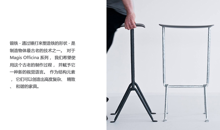 设计师罗南(Ronan)和Erwan Bouroullec用他们的办公凳,采用了古代的滴锻铁工艺,创造了属于当下的物质语言。锻铁腿以坚固的结构缠绕在一起,但它们表现出微妙的平衡和最小的存在。它们与聚丙烯座椅匹配,可提供多种颜色,以适应各种当代室内设计