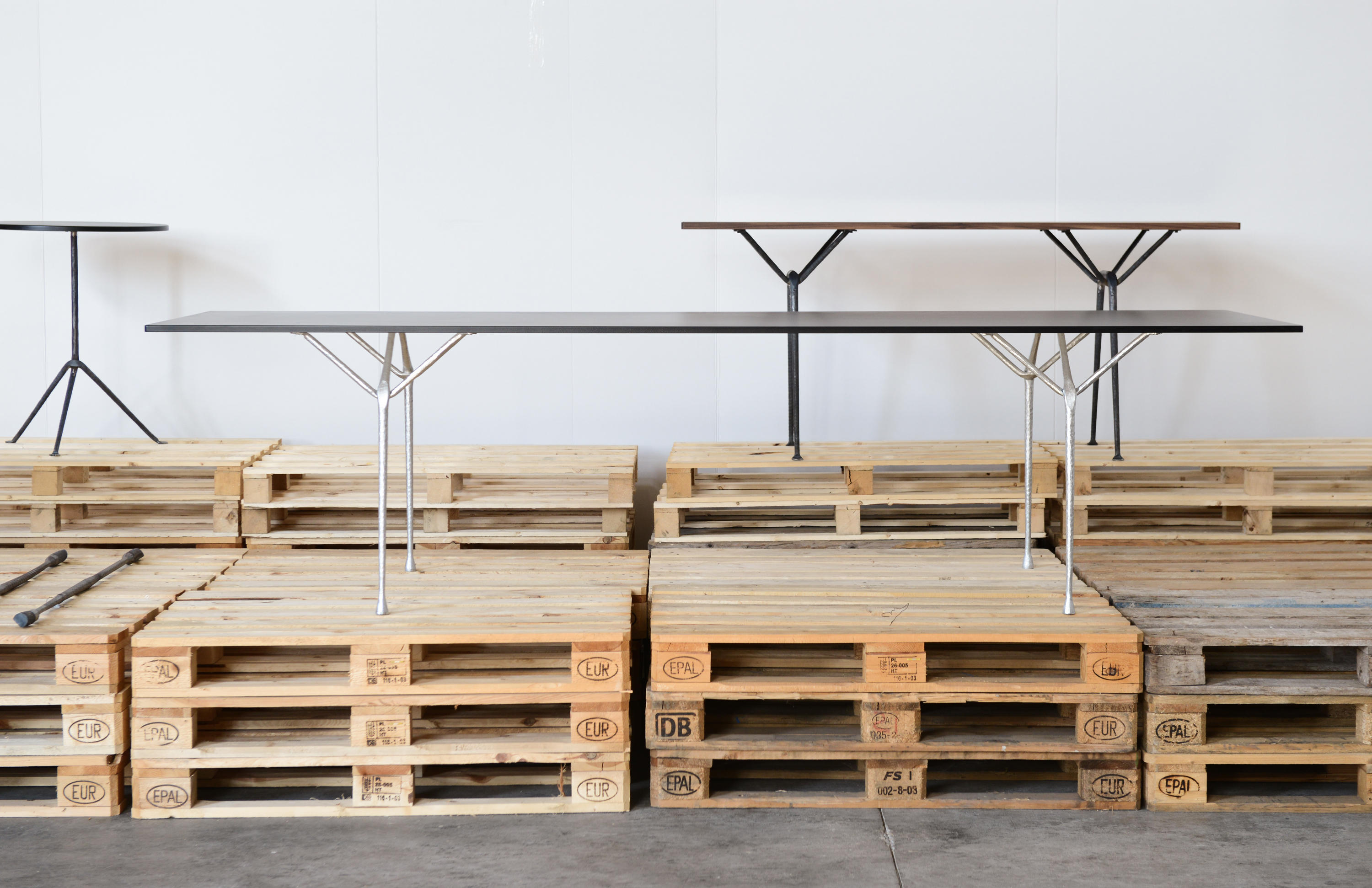 设计师罗南(Ronan)和Erwan Bouroullec用办公桌边设计了一种古老的锻造和锤击铁,用来制作各种形状。他们的目标是“利用这个古老的制造过程,给它一种新的视觉语言,”Erwan说。语言具有真实性和思想性。罗南指出:“通过对那些赋予它们形状的工具的随机、机械痕迹的反射,这些东西给工业计划带来了一股清新的气息。”