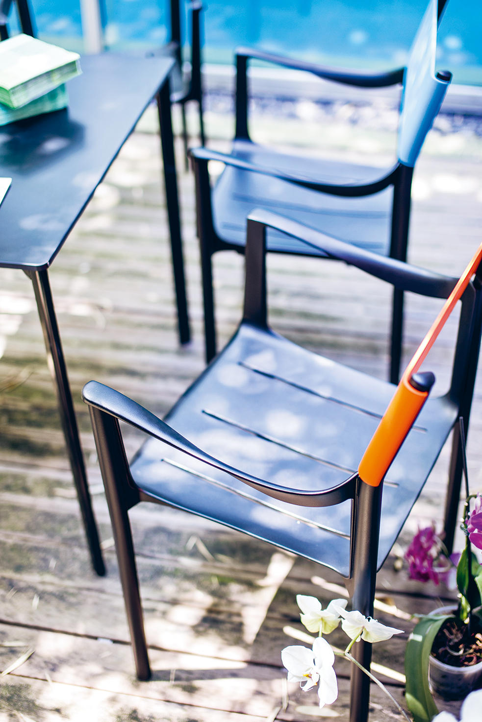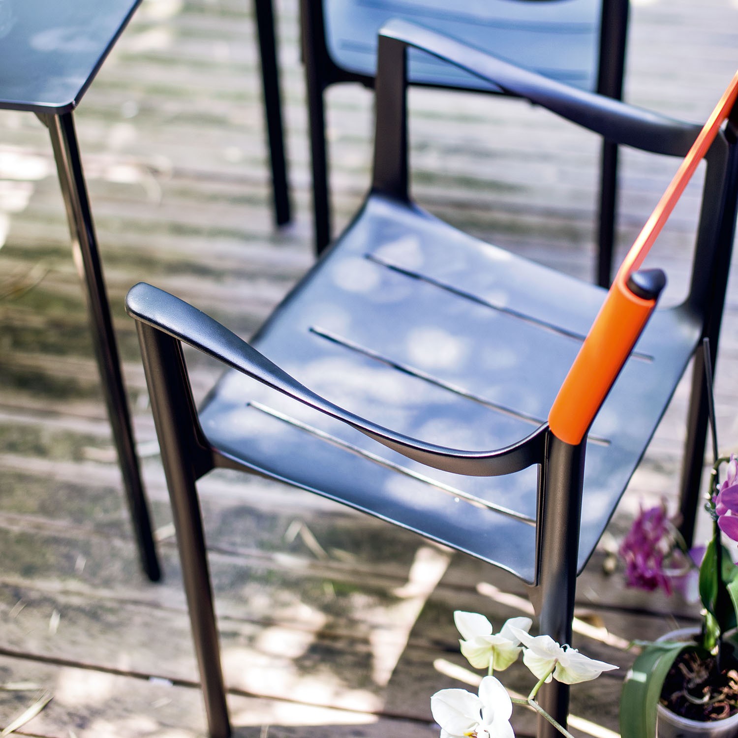 威尼斯是一把有扶手的椅子。它的特点是抛光或涂漆的压铸铝框架。背面可采用热塑性橡胶或皮革。可选择的座位垫在膨胀聚乙烯覆盖在您选择的Kvadrat织物,适合户外使用或皮革。