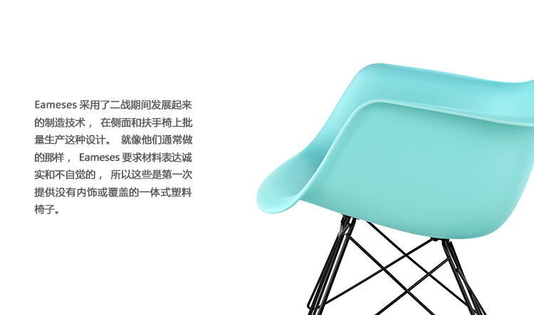 20世纪最有影响力的规格档设计师Charles(1987-1978)及Ray Eames(1912-1988)经典名作,希望为使用者带来愉悦的经验为其设计理念。 本单品为Eames Plastic Chair 系列成员之一,舒适的椅座外观设计是以添加了玻璃纤维强化的塑料来制作,再搭配上各式不同的脚座来增添使用的多样化,值得一提的是Eames Plastic Chair 的创新技术与材质,便它得以成为全世界第一张被大量制造的单椅。拜现今创新的科技所赐,全系列的Eames Plastic chair 终于再次制造,使用环保可回收的聚丙烯材质,求制作线条优美的椅座外壳,不但重量更轻,同时更具有更好的耐热性及抗化学性。