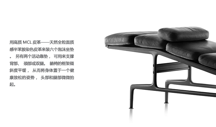 Eames躺椅柔软、舒适,且只有45.72厘米宽。躺在上面时,您会自然地将双臂折叠在胸前。如果您打瞌睡了,双臂则会立刻垂落在身体两侧,从而唤醒自己。这是一个供暂时小憩的美丽场所,可放在书房里、私室中或者行政办公室中。