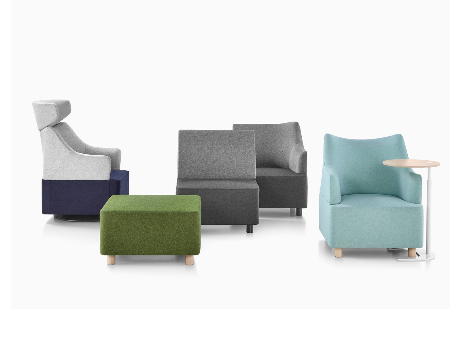 Plex将居住环境的舒适性引入到工作场所。俱乐部的椅子和沙发大小适合各种形状和身材的人。椅子的背部是雕刻的,人们可以根据手头的任务改变自己的姿势,从交谈到处理邮件。