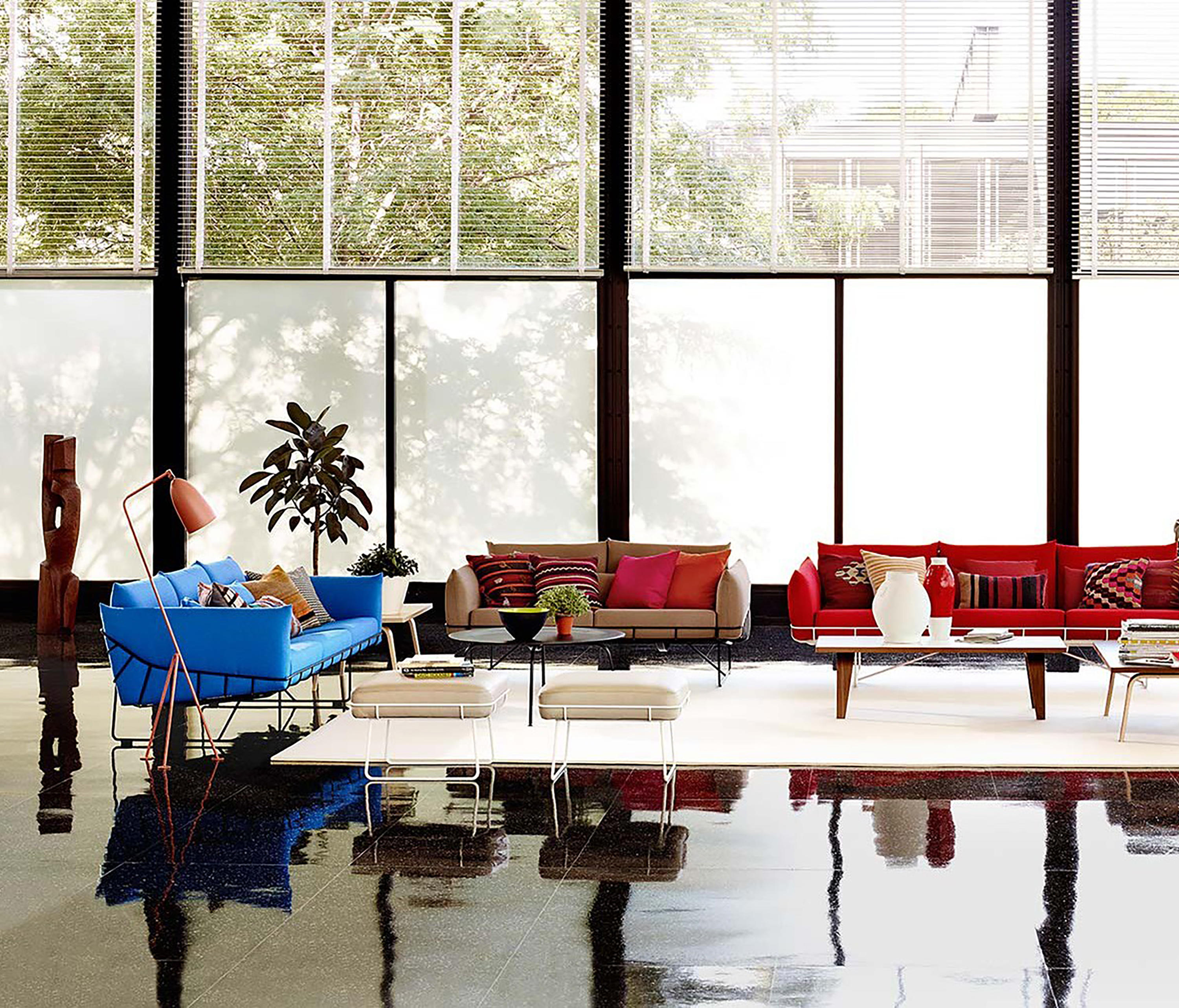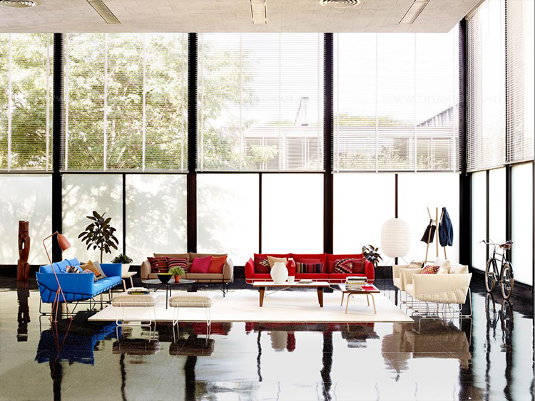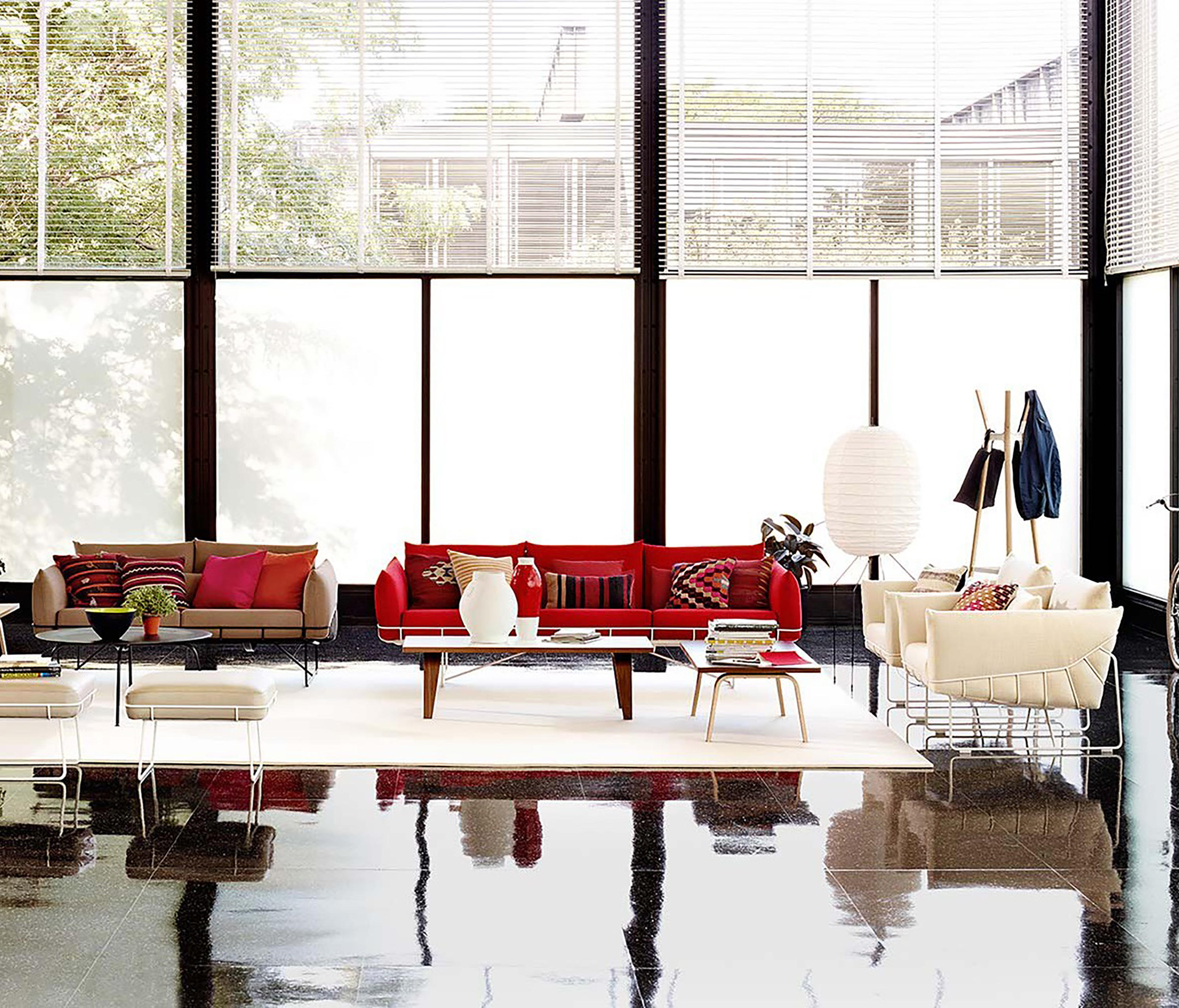 从视觉上说,柔软和体积包含在一个正式的框架,线框沙发组例证了一个反复出现的主题山姆赫克特和金科林:对比紧张。该设计的外部结构是由钢丝形成的——这是赫尔曼米勒经典设计中长期使用的材料,因为其强度和耐久性。车架内的坐垫是轮廓分明的,赫尔曼米勒(Herman Miller)最初为医疗行业开发的一种悬架技术让坐垫更加舒适。腰椎和抱枕是祭品的全部。轻便,大小不一,多用途的座椅可以轻松地变换位置,以满足不断变化的空间需求,以及在其中工作和放松的人。海克特和科林的设计体现了我们今天的生活方式。选择包括白色或黑色框架与多个室内装潢选择在两人和三人座位的沙发