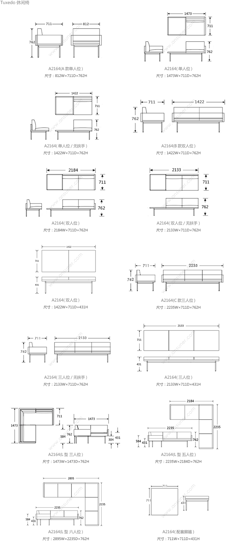 Tuxedo休息室座椅灵活而实用,可配置适合多种空间,包括行政办公室,休闲会议区,大堂和接待区,以及起居室和住宅空间。