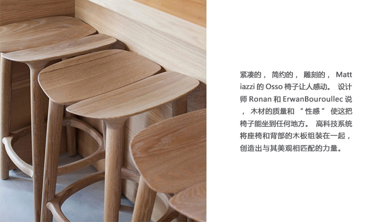 紧凑的,简约的,雕刻的,Mattiazzi的Osso椅子让人感动。设计师Ronan和ErwanBouroullec说,木材的质量和“性感”使这把椅子能坐到任何地方。高科技系统将座椅和背部的木板组装在一起,创造出与其美观相匹配的力量。