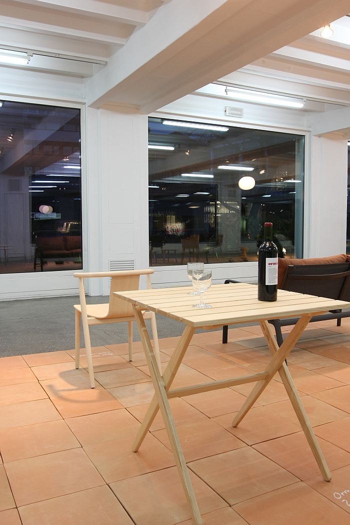 Fionda系列家具的特点是一个固体灰折叠框架与座椅制成