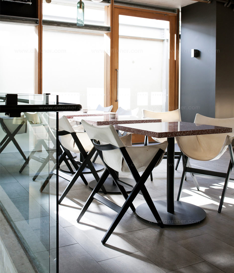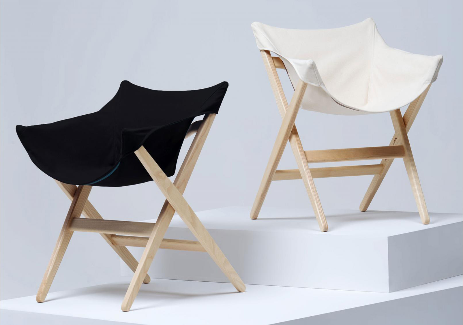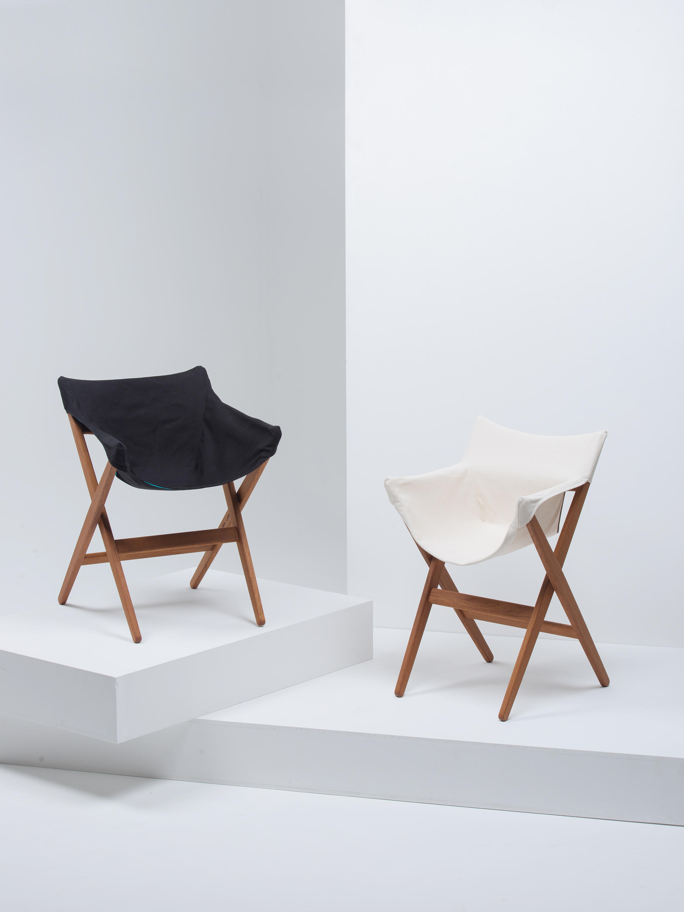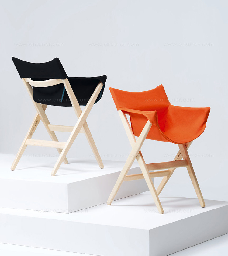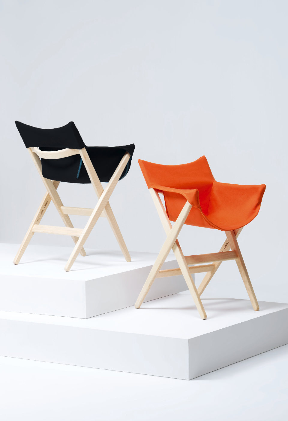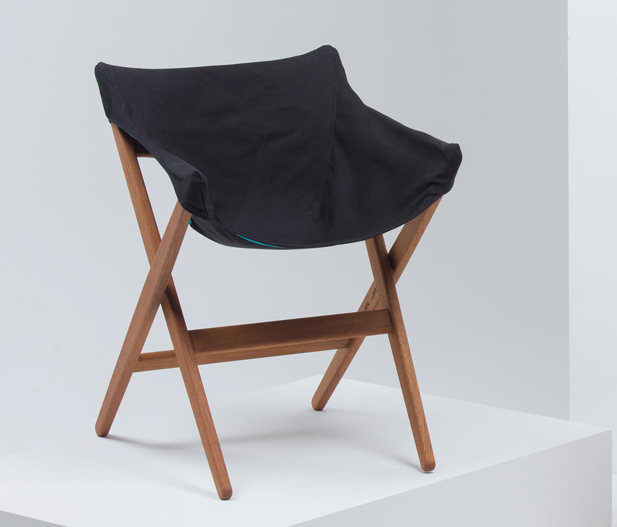 Fionda系列家具的特点是一个固体灰折叠框架与座椅制成