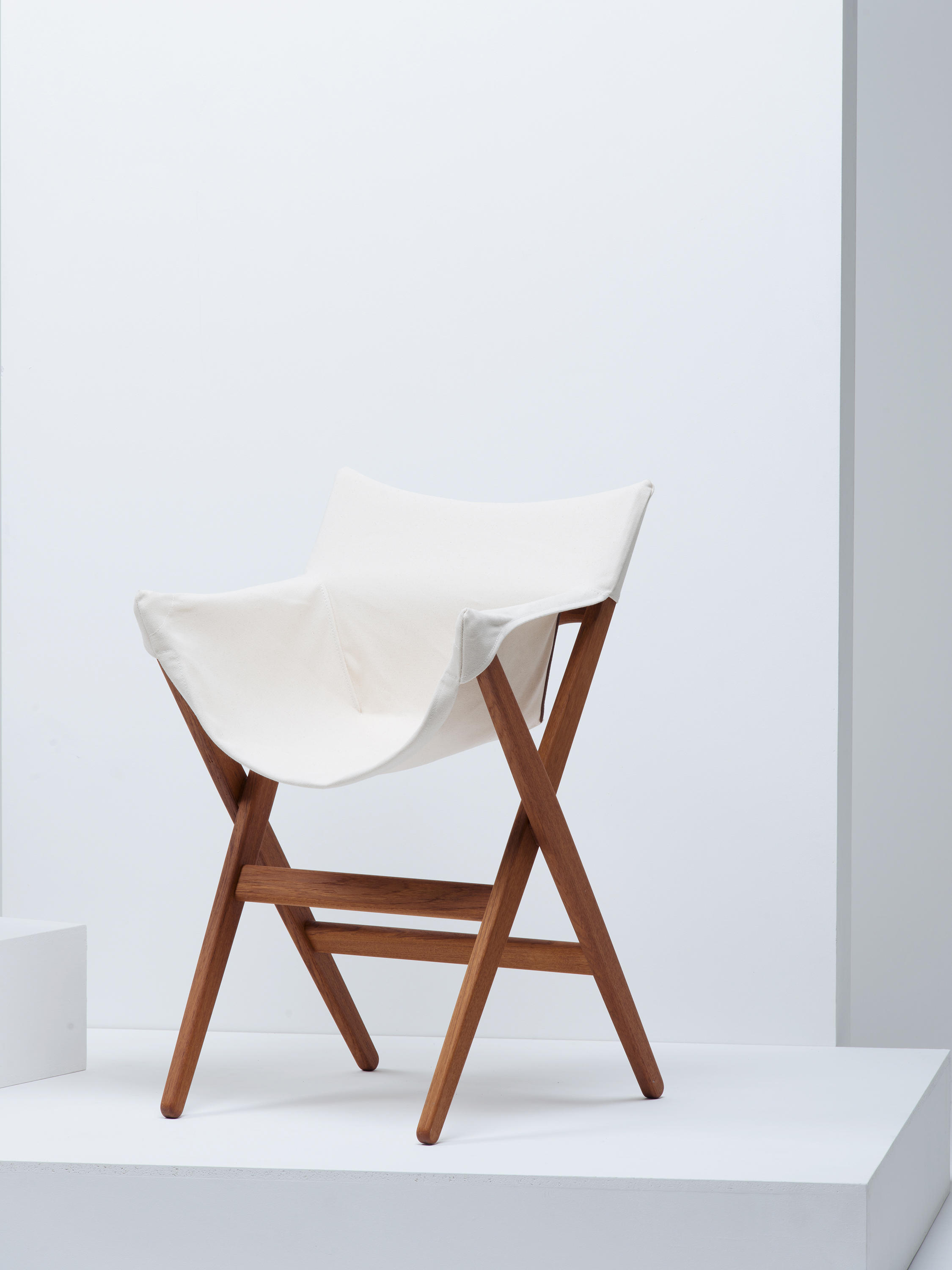 莫里森解释说,菲奥达的灵感来源于在日本买来的一张露营椅,就在他的起居室里。为了使座椅更舒适,更真实的客厅椅子,他决定做一个项目,去除铝条正面和背面。 结果是一把轻便而坚固的椅子可以堆叠起来盖上盖子。