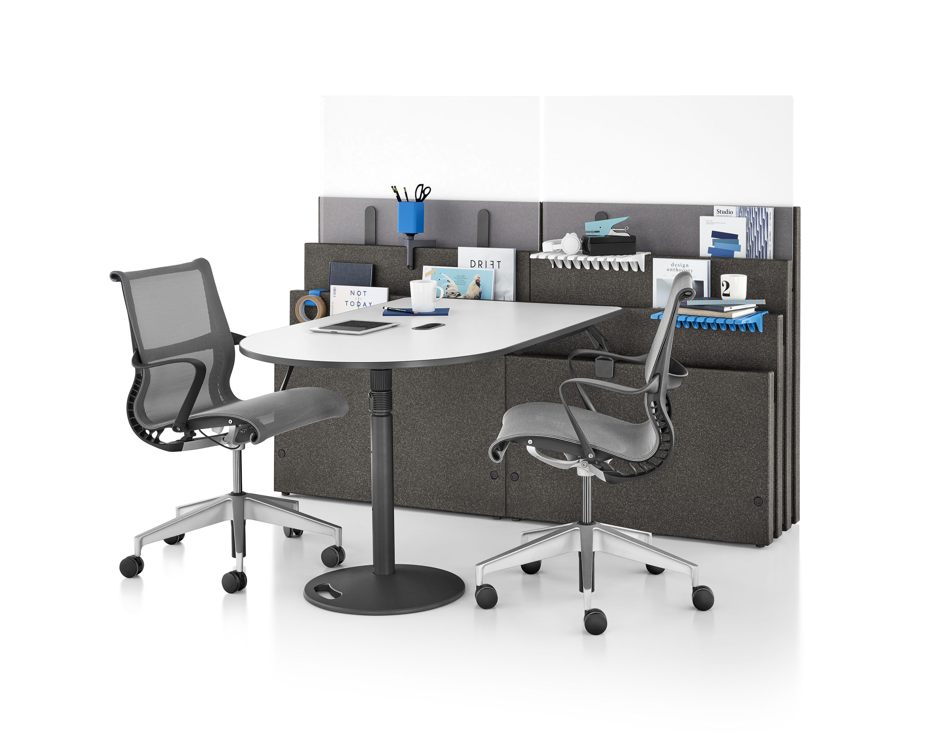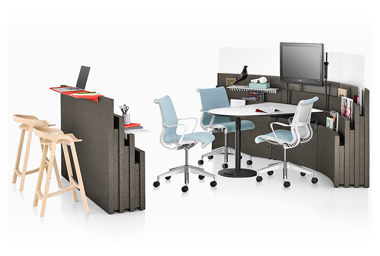 Metaform Portfolio可让您根据活动和需要轻松布置您周围的环境。 可以营造一个用于团队召开非正式会议的区域,或者在需要私密空间的情况下,布置一个您的所有个人物品和工具正好位于随手可及之处的工作空间。