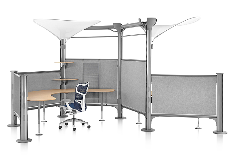 Resolve设计核心的开放式角度营造出引人动心的工作区域,促进同事间互动,为小空间带来宽敞的感觉。没有面板或墙壁的限制,空气和光线可以穿过空间,并为员工提供毫无阻挡的视野。屏风和天篷提供封闭和隐私感,平衡了设计中过于空旷的感觉。