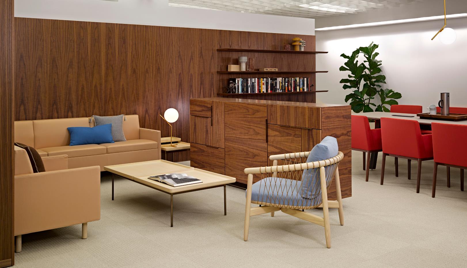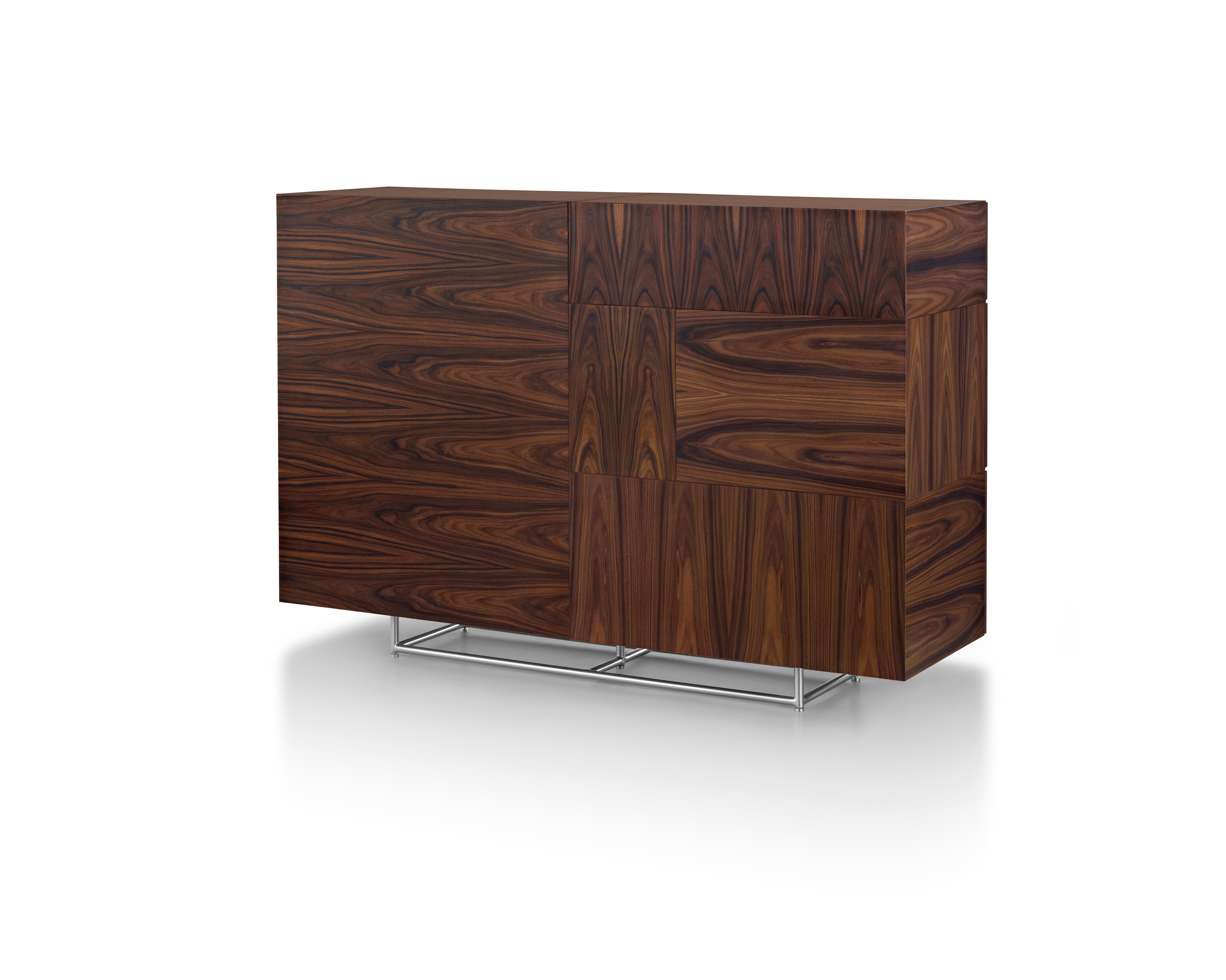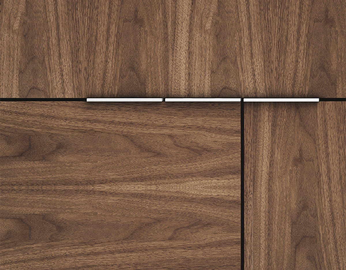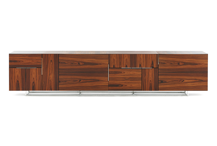从内而外打造Domino系列绝不意味着Weinfeld忽视了外部的设计。精致的细节设计和工艺无处不在:从巧妙的胶合板到斜接转角。Domino系列方方面面都堪称完美,既可摆放在客厅和餐厅之间,也可安置在开放式办公室中。该系列可提供66.04厘米和101.6厘米两种高度选项,两单元、三单元或四单元宽度选项,以及六种格局选项。饰面采用胡桃木、巴西花梨木及黑檀木打造而成,镀铬或缎面镀铬镶边,内部采用坚固的水曲柳。