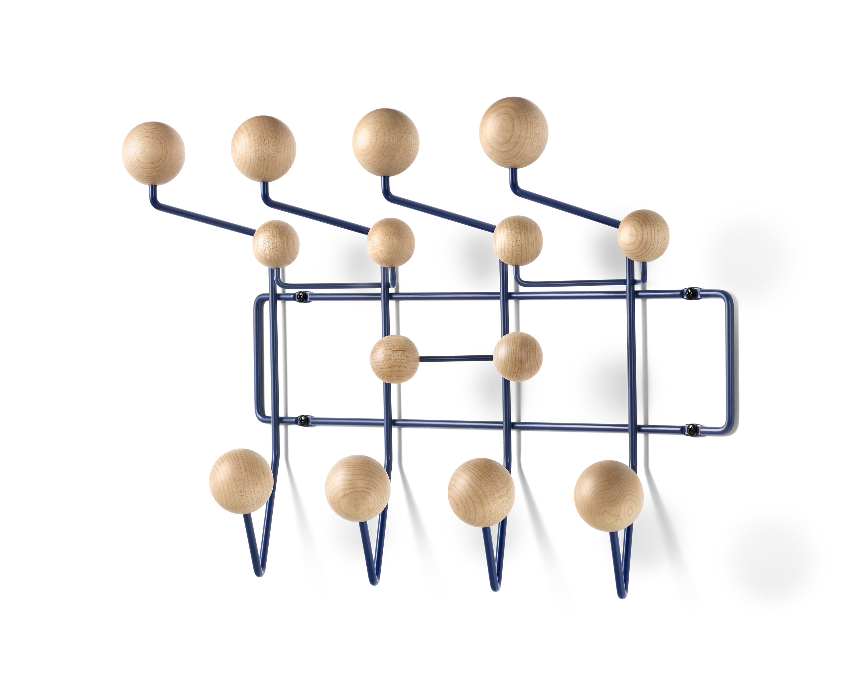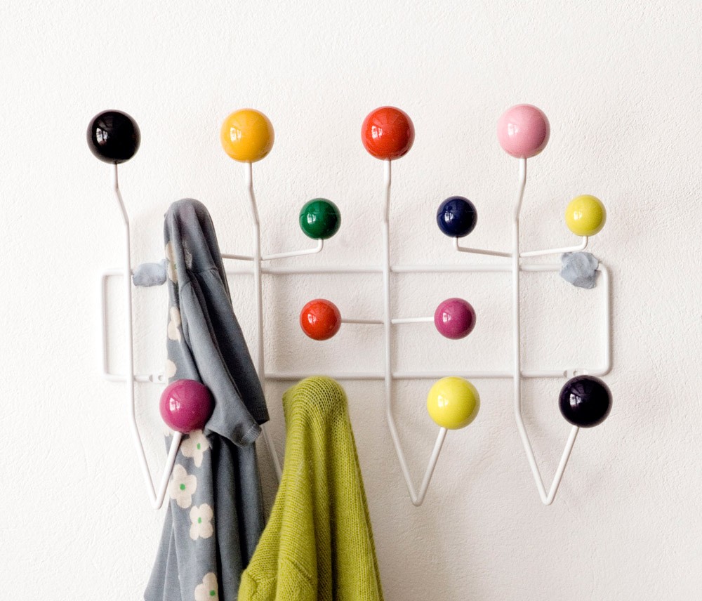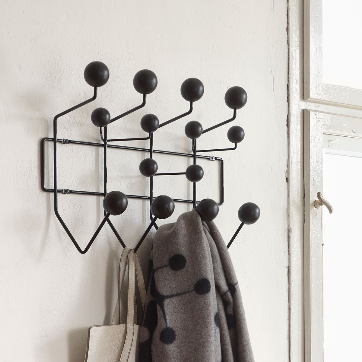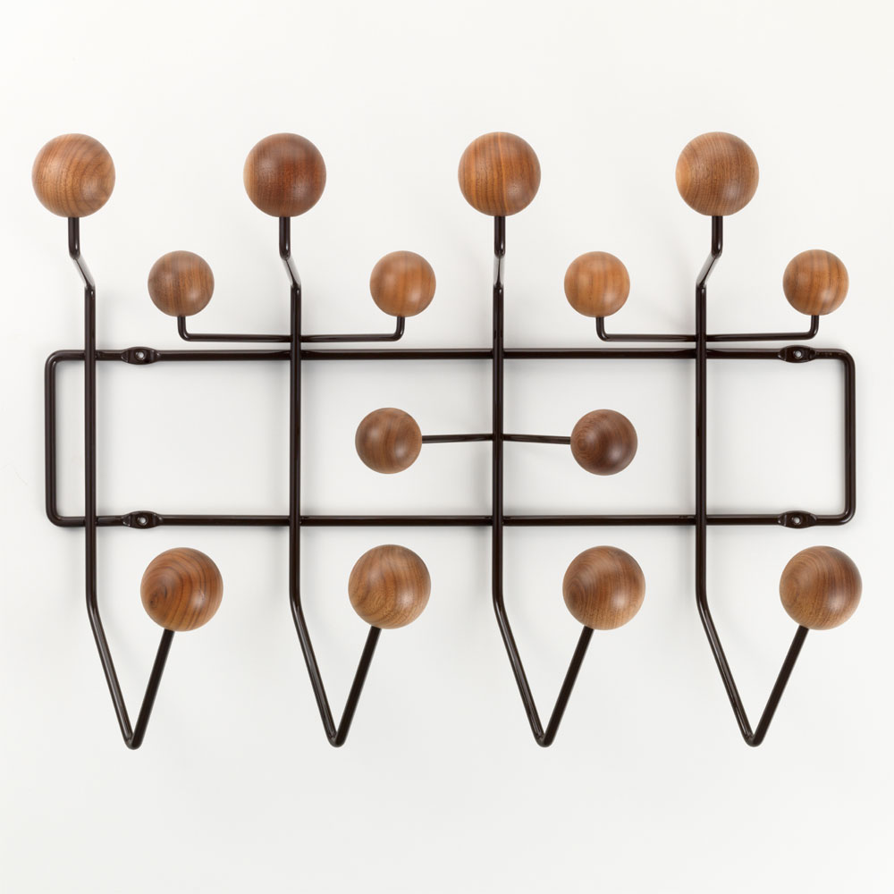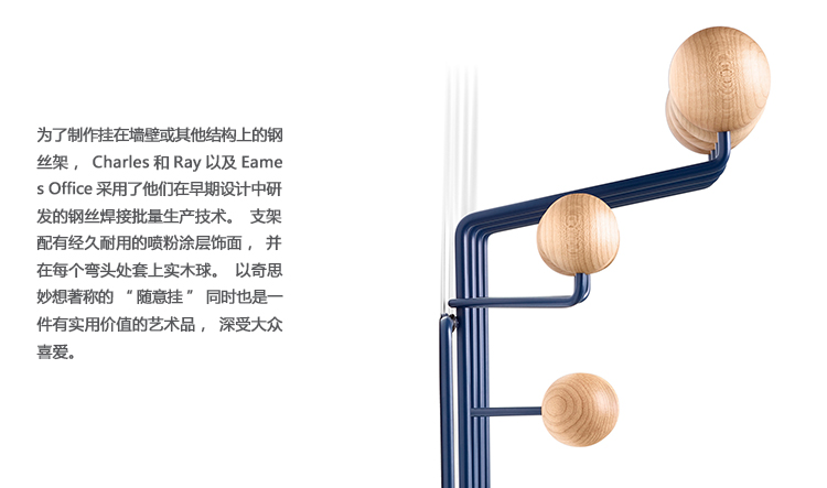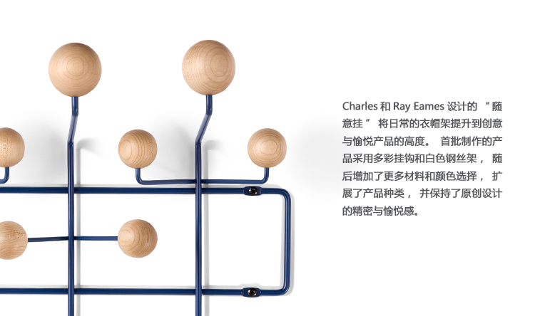查尔斯和雷·埃姆斯把他们的衣架全部挂起来,把日常的衣架提升到一种创造性和趣味性。最初是用多色的挂钩和白色的金属线框制作而成,从那以后,它的材质和配色都更加忠实于原作的复杂和玩味。