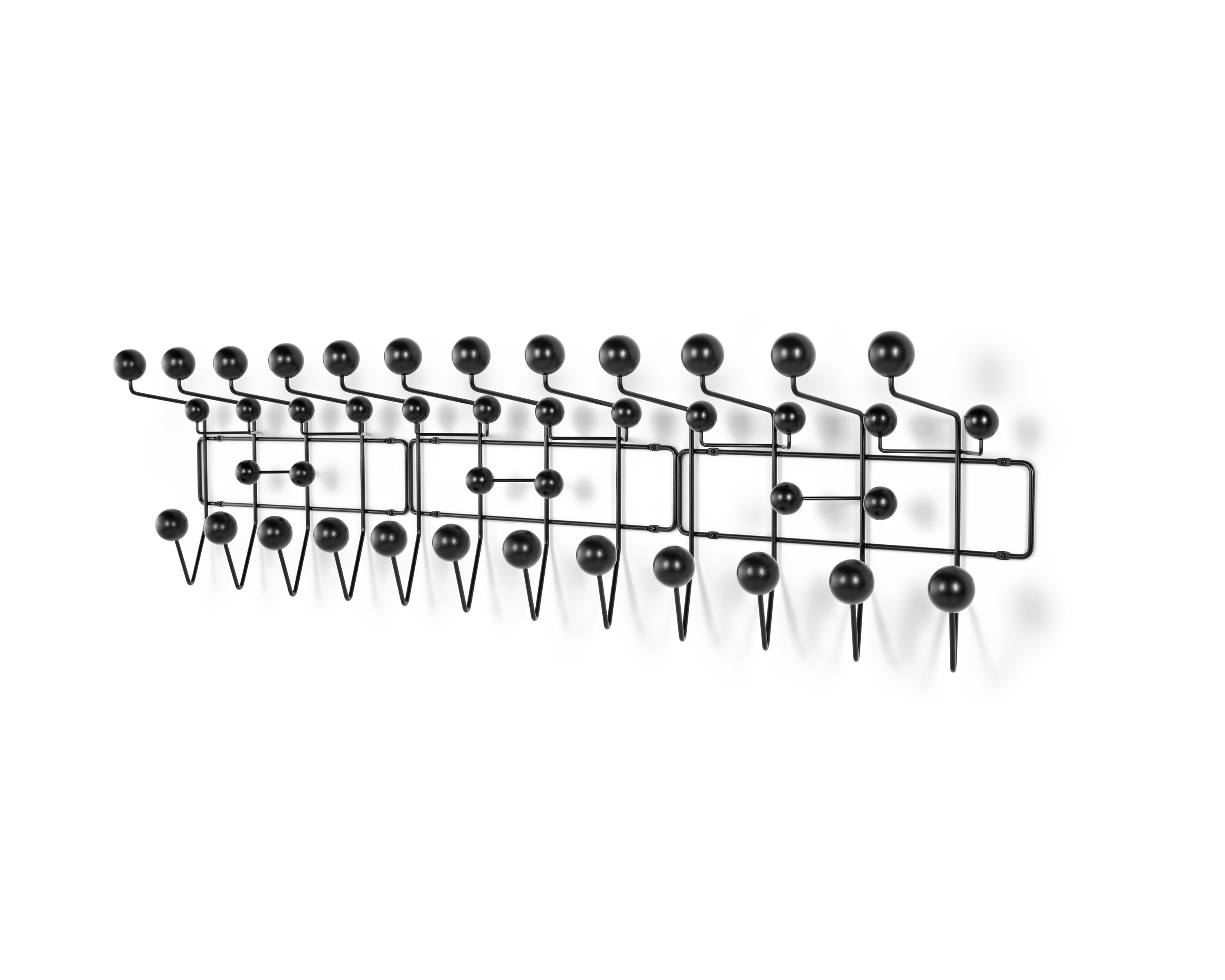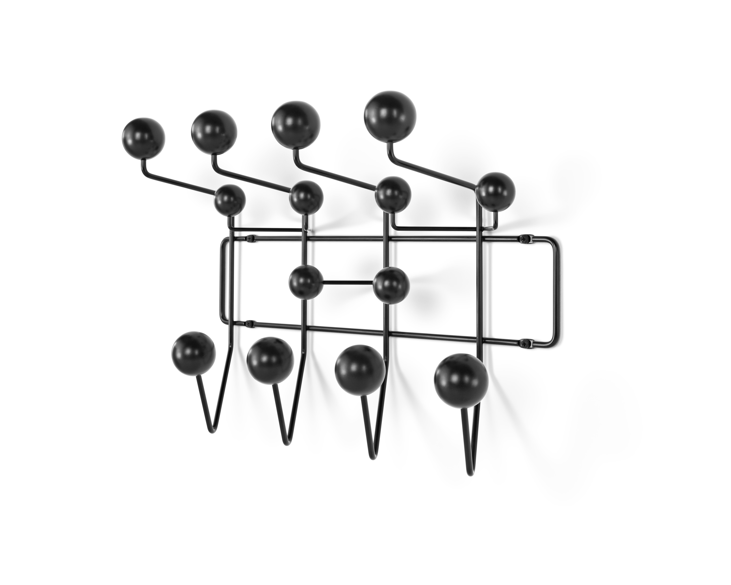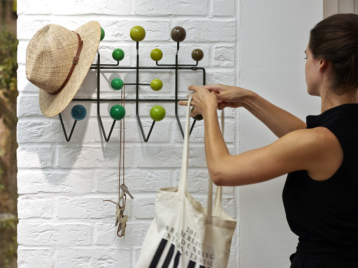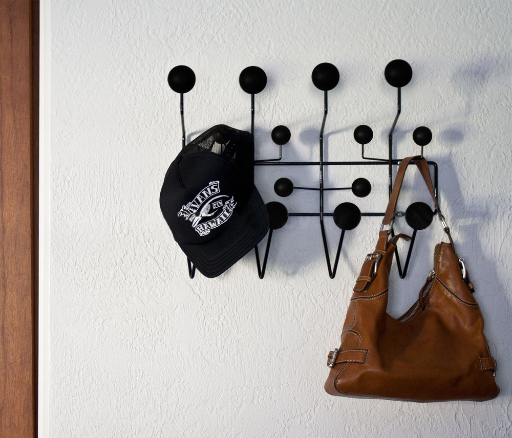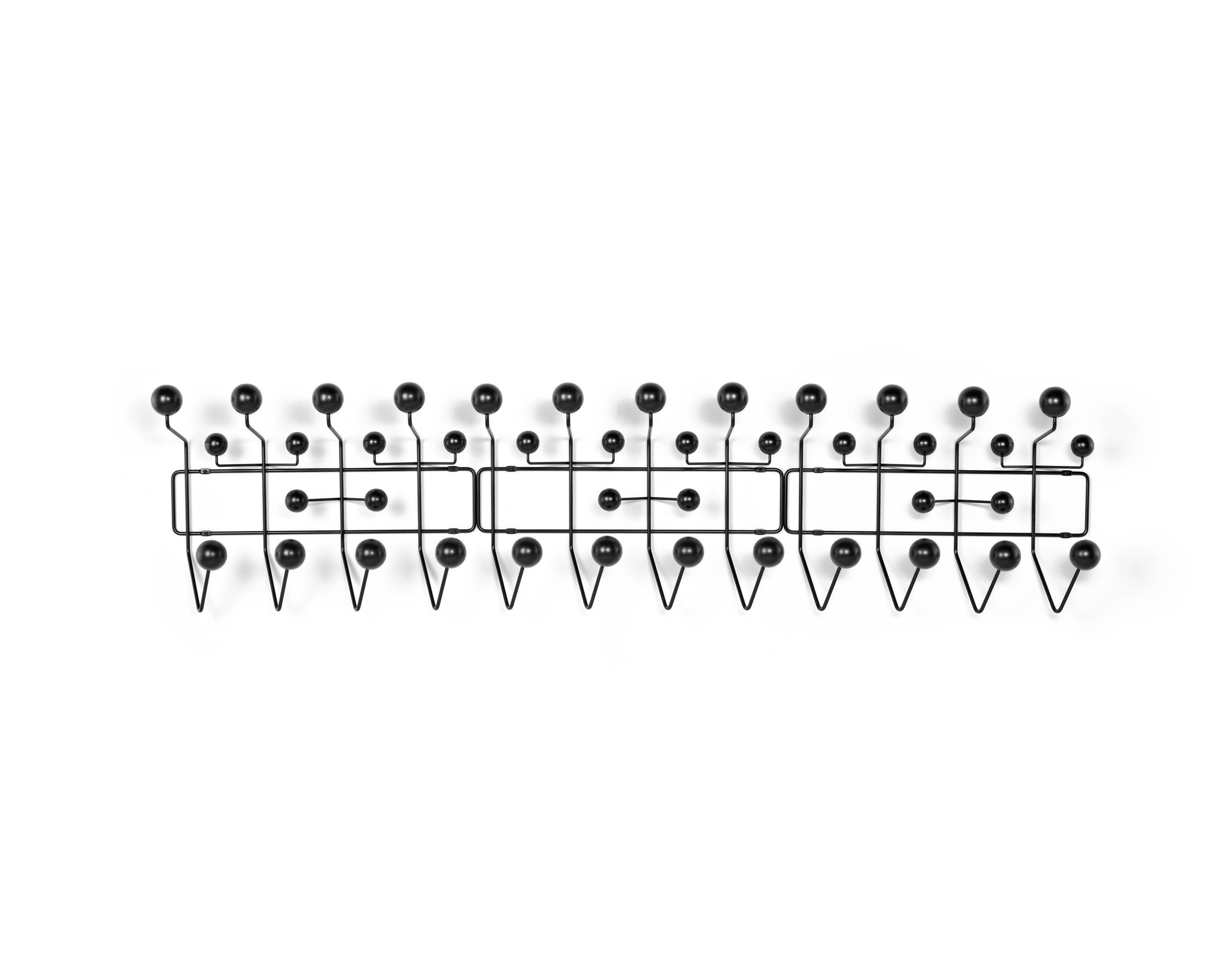 查尔斯和雷·埃姆斯把他们的衣架全部挂起来,把日常的衣架提升到一种创造性和趣味性。最初是用多色的挂钩和白色的金属线框制作而成,从那以后,它的材质和配色都更加忠实于原作的复杂和玩味。