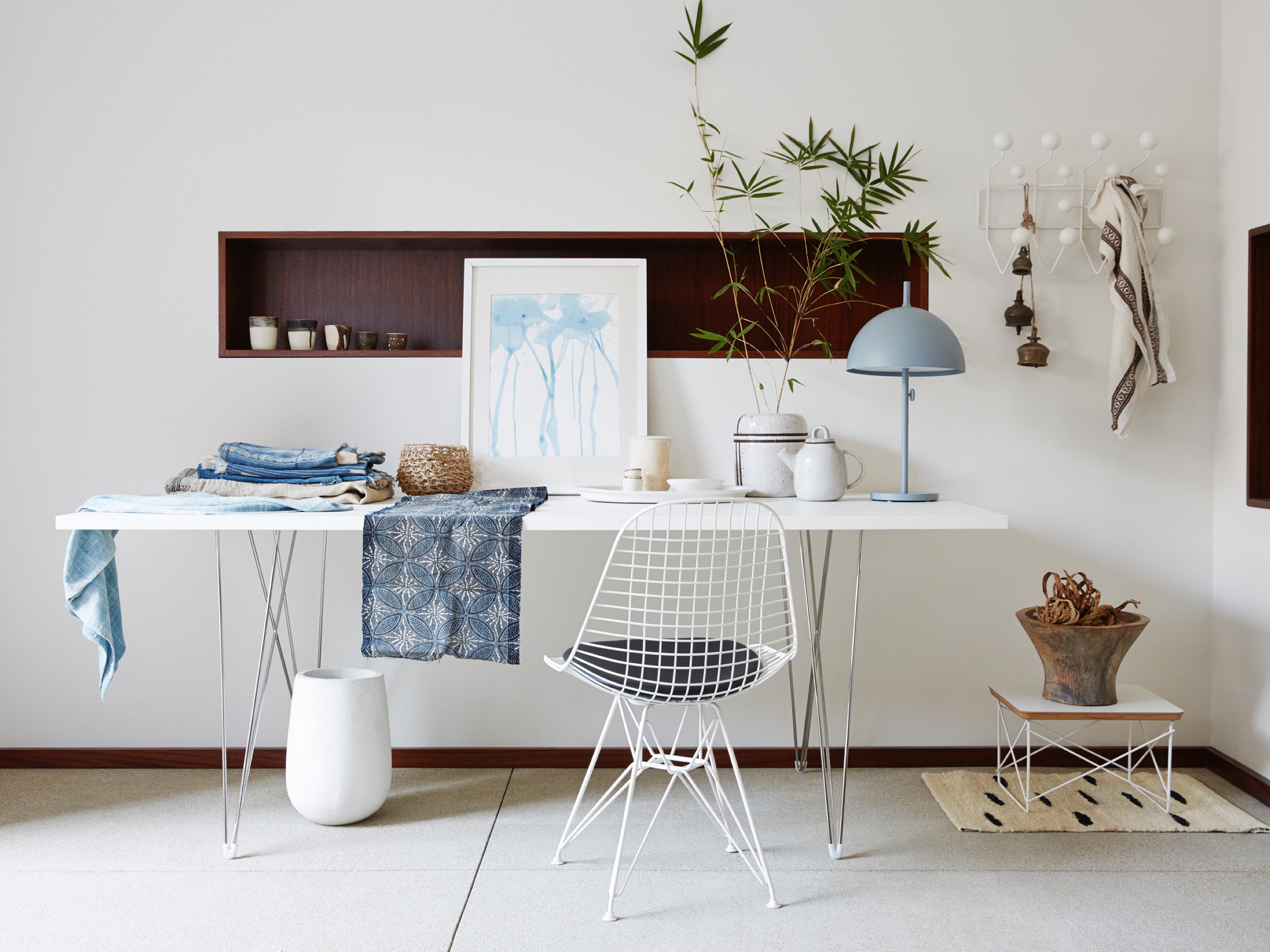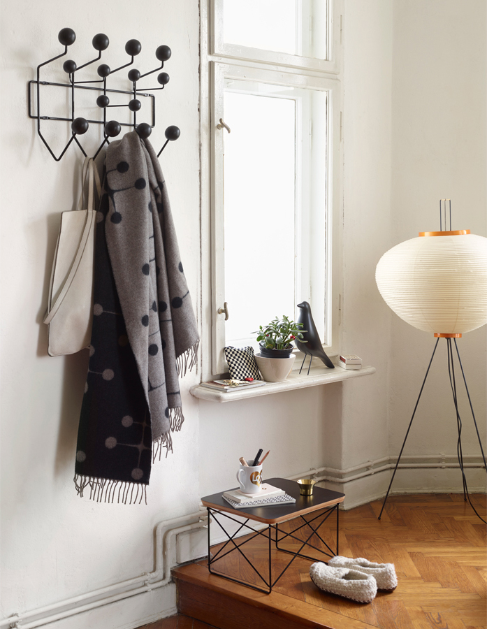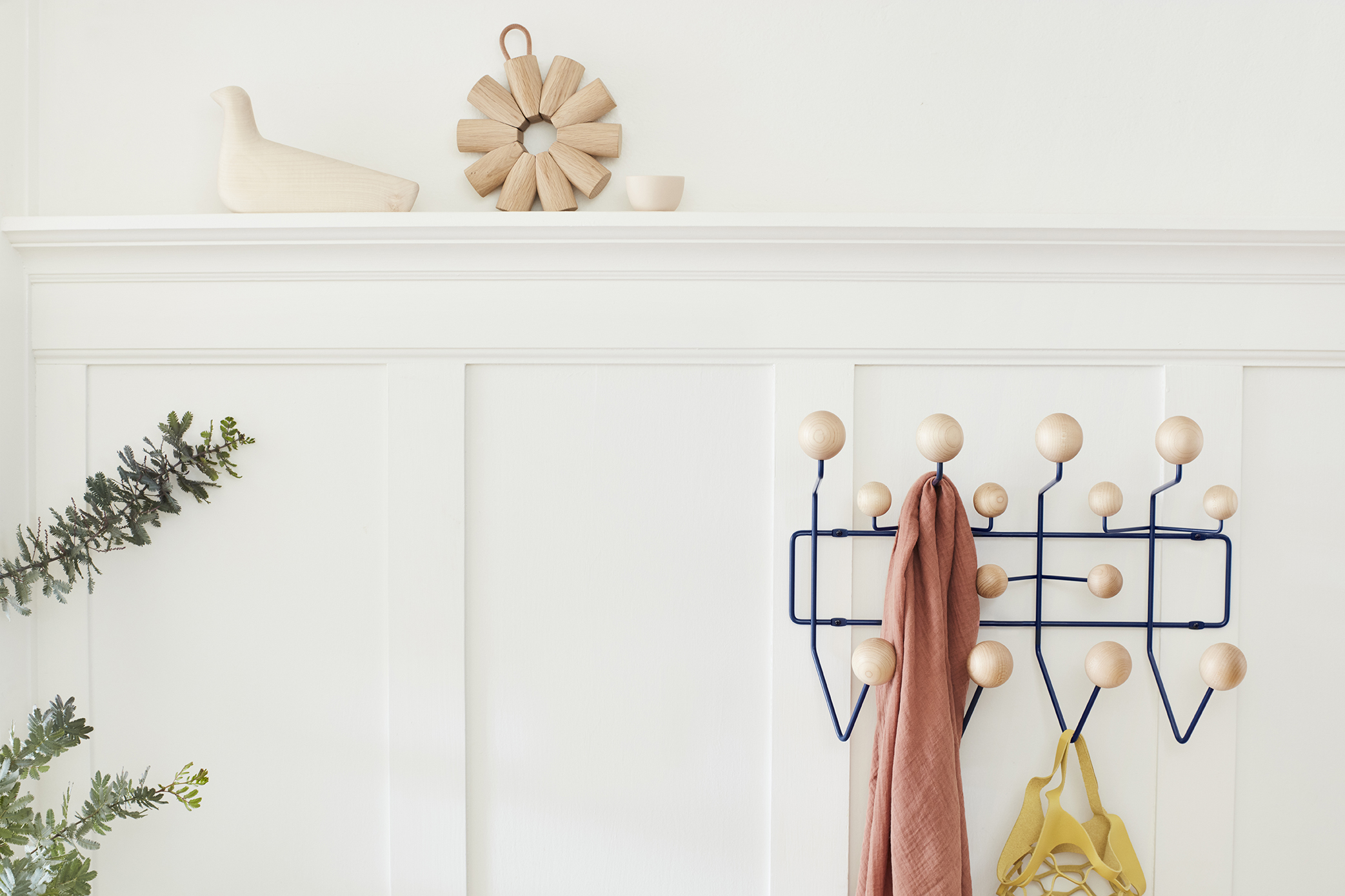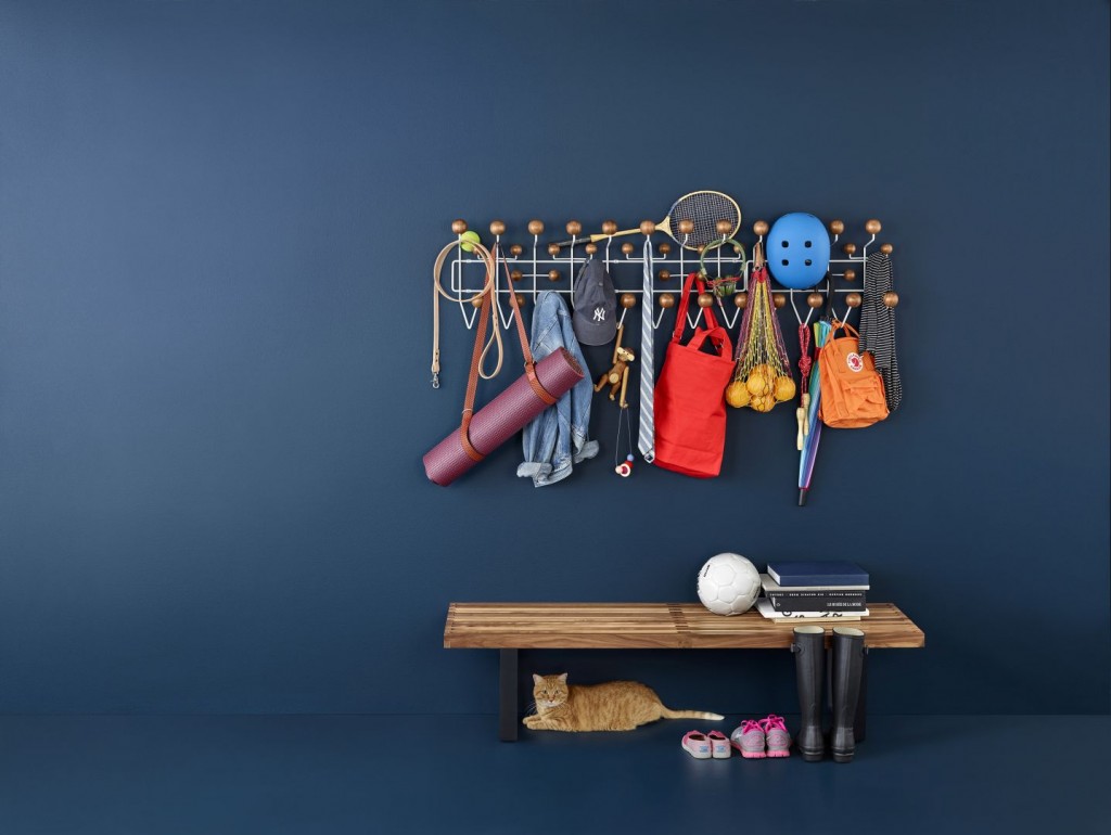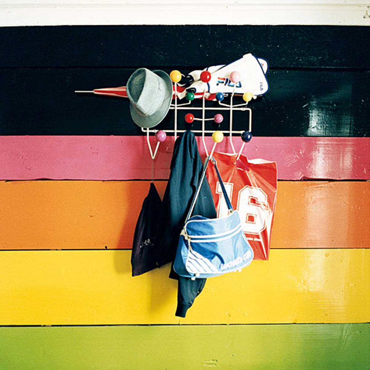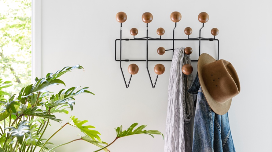 查尔斯和雷·埃姆斯把他们的衣架全部挂起来,把日常的衣架提升到一种创造性和趣味性。最初是用多色的挂钩和白色的金属线框制作而成,从那以后,它的材质和配色都更加忠实于原作的复杂和玩味。