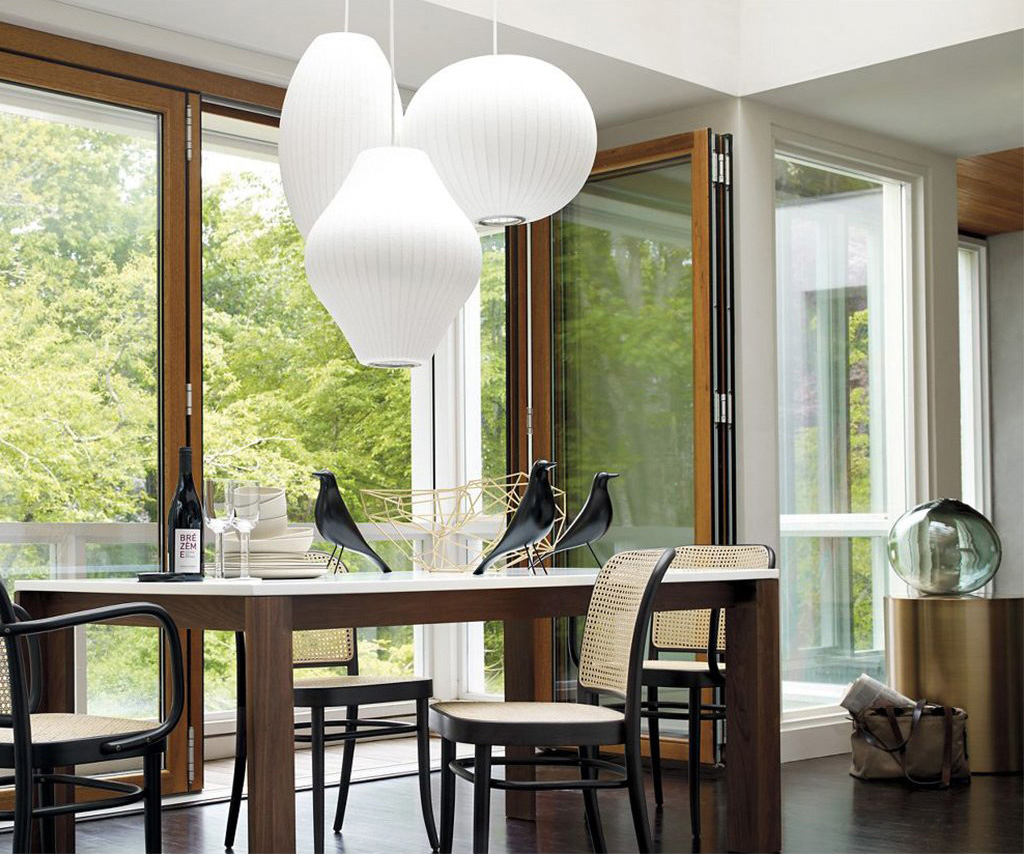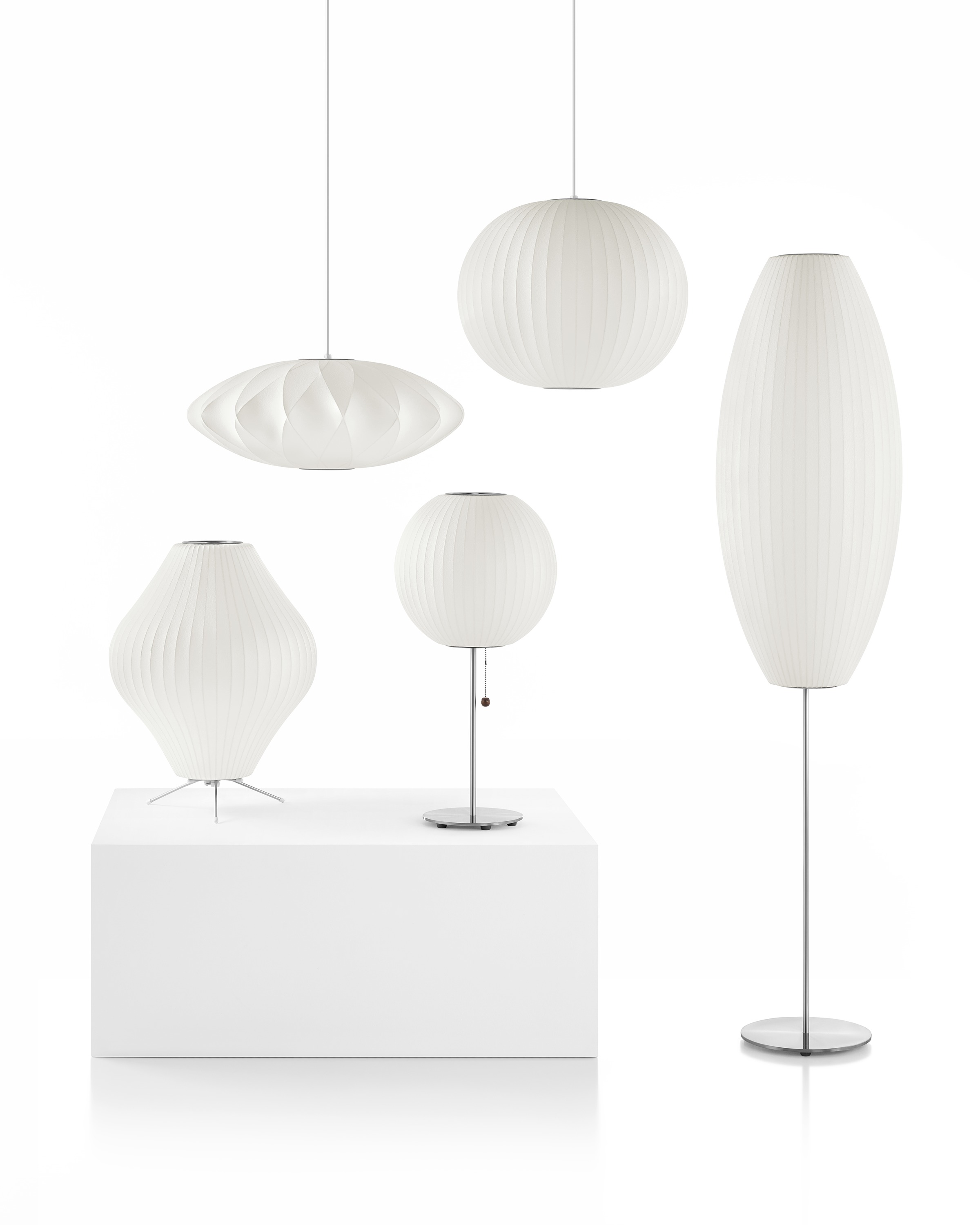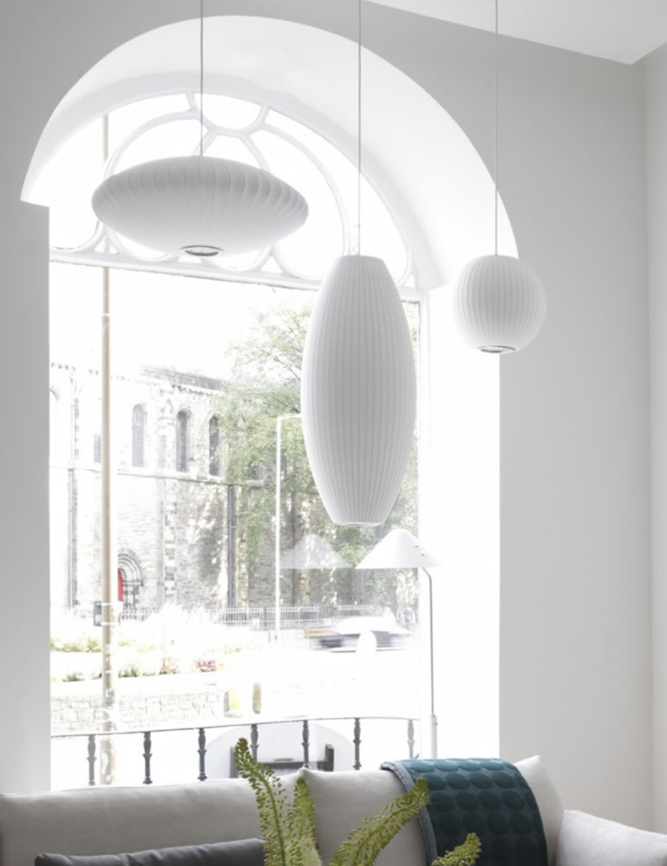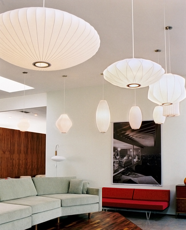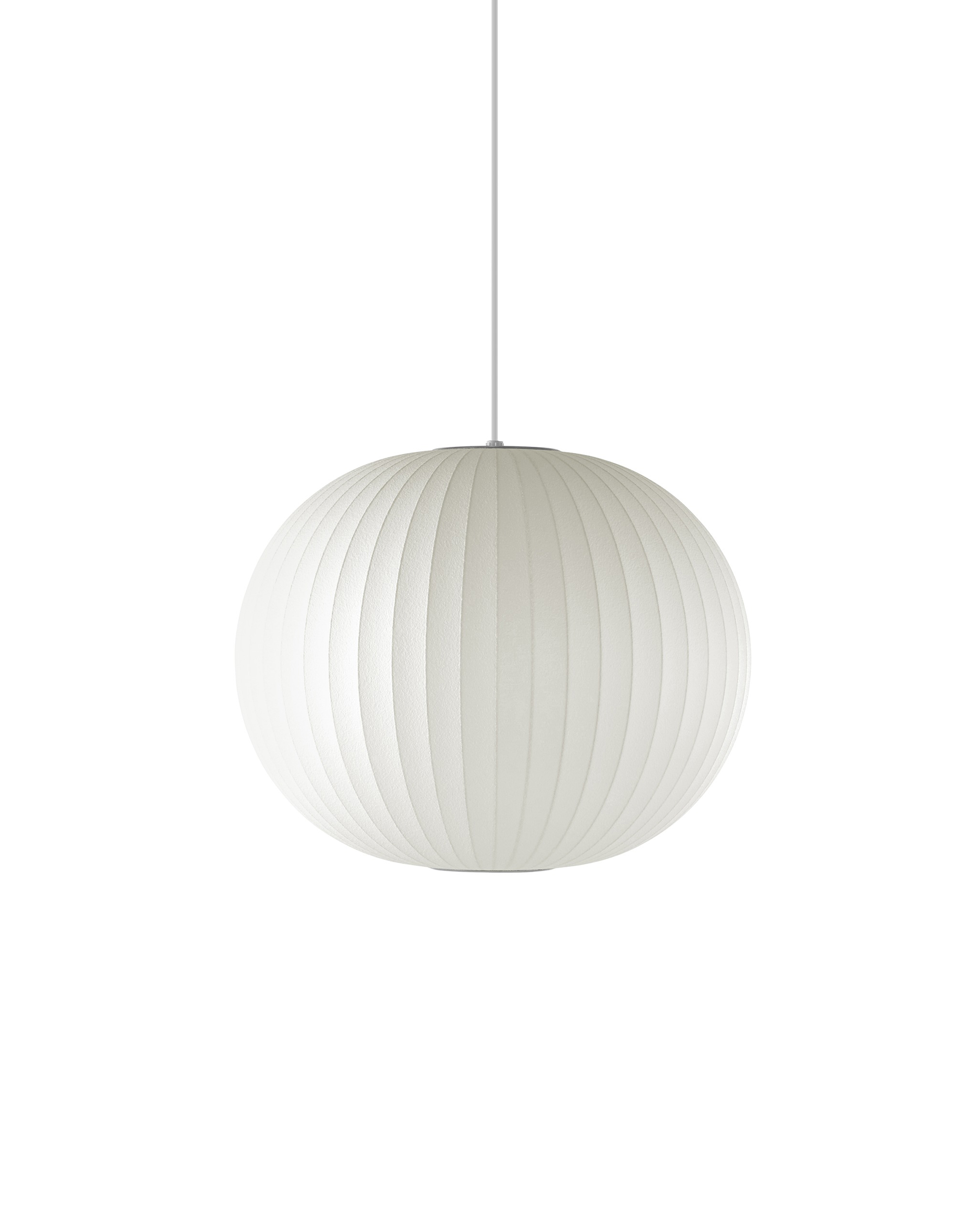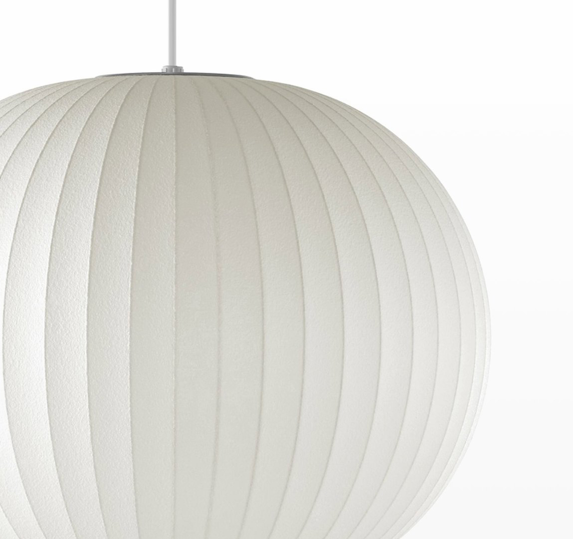 Nelson气泡灯具有迷人的球状轮廓,能为室内设计增添一缕温婉柔美的光彩。球形气泡吊灯可提供三种尺寸,其浑圆的球形部分通过一根6英尺的吊绳悬挂在吊线板上。气泡灯最早设计于1952年,当时Nelson被一组瑞典吊灯深深吸引。其令人望而生畏的高昂价格让Nelson当即就想要设计自己的作品,但通过某种方式让这些灯更加经济实惠。其结果是一系列灯具的面世,这些灯具以一些自然的球状外形为特色,比如圆圆的苹果、加长的雪茄和造型优美的梨等。