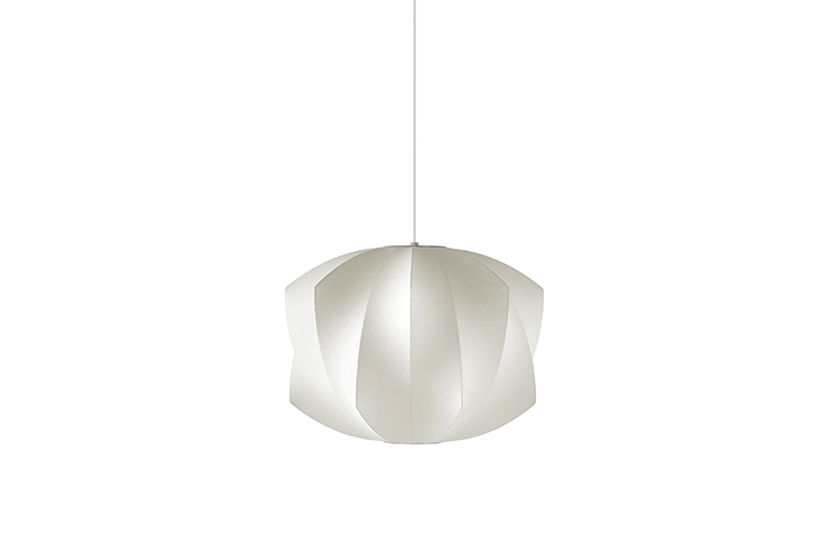 Nelson Propeller Bubble Pendant螺旋桨形气泡吊灯的下层结构中有许多棱角状的凹陷,外形十分醒目。这款雕塑般的吊灯配套有一个吊线板和将吊灯悬挂到天花板上的6英尺吊绳。Nelson最先于1952年设计了这些气泡灯,当时他偶尔碰到一组很喜欢的瑞典吊灯,想给自己的办公室买一套。“有一天,纽约的一家瑞典进口商品店Bonniers宣布对这些灯具进行促销。我带着办公室的一个伙计冲了过去,看到一款在商店里摆放了很久、上面满是手指印的样品居然标价125美金。”Nelson写到。这个价格在当时来讲太过昂贵,让Nelson萌生出自行设计的念头来。