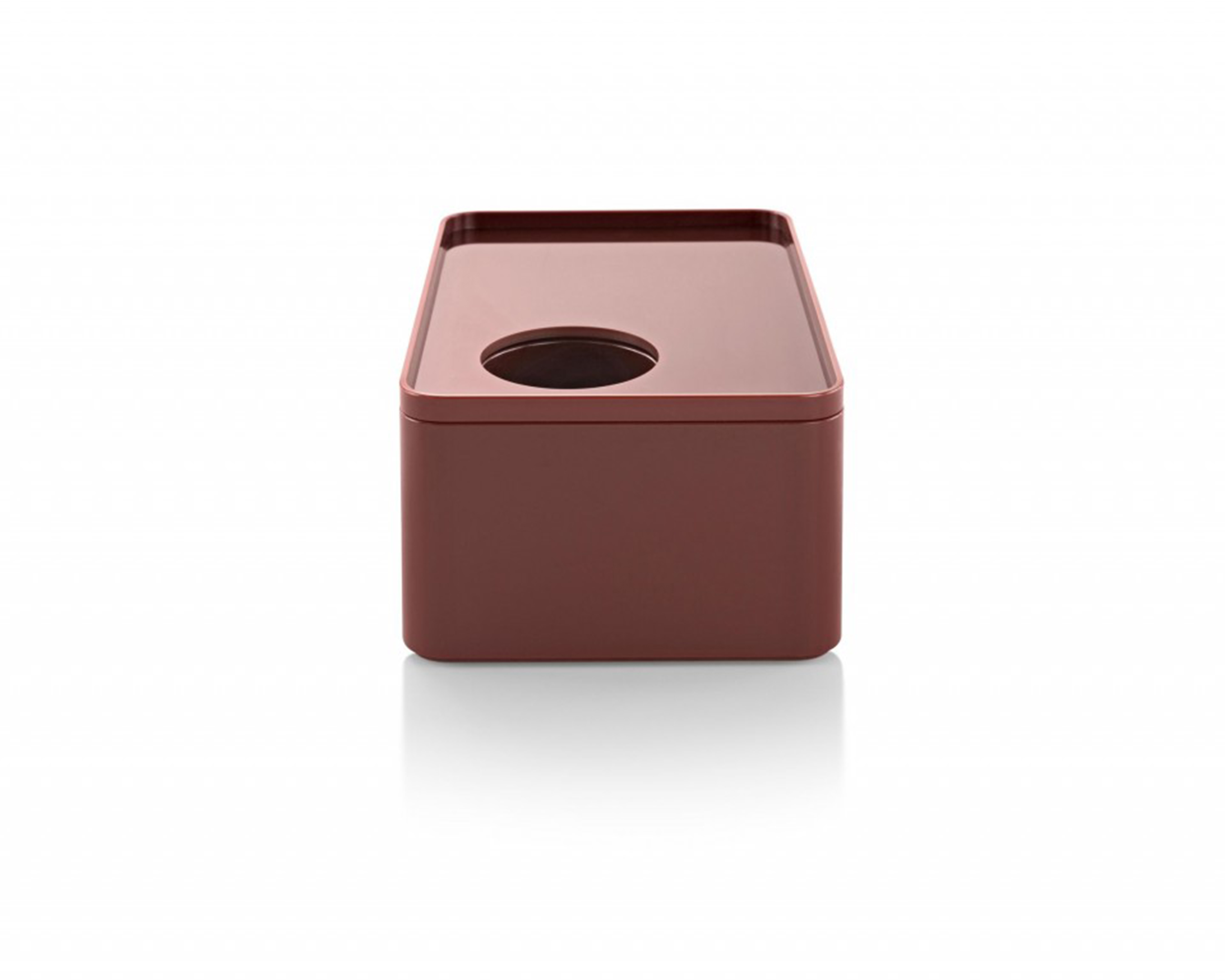 考虑到占据家庭及办公室空间的笨重物品的存放问题,Sam Hecht和Kim Colin设计了具有可拆卸盖子的储物盒。每个盖子上设计有孔洞,可供放置移动式笔筒。或者,笔筒可固定于储物盒内部孔洞下方压槽中,从而在无需打开盖子的情况下便可接触杯中物品。