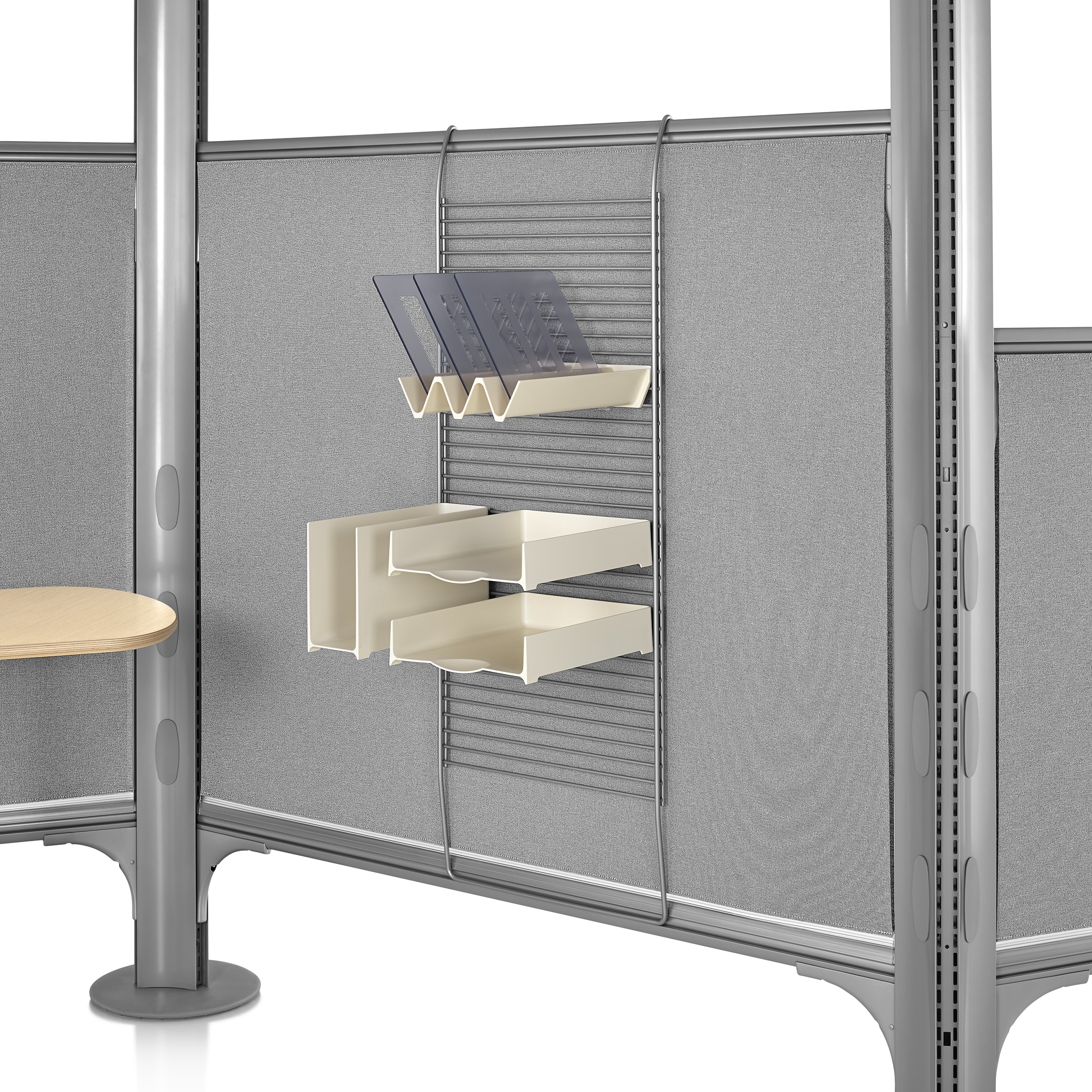 三个插槽。透明分隔器可以移动以支持对文件和文件夹的右手或左手使用。钢轨连接或独立的。