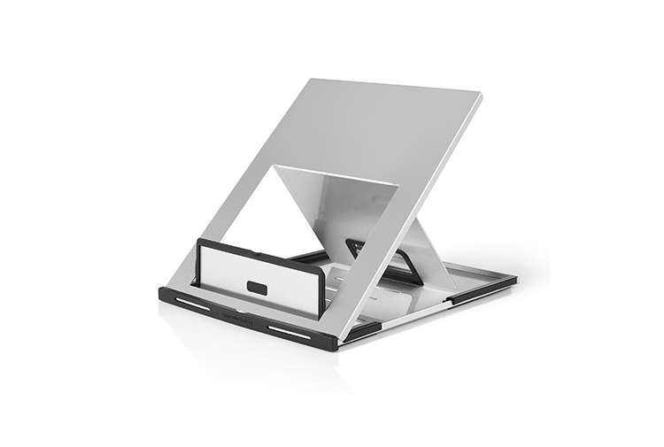 Lapjack坚固而轻盈,可以让您的笔记本电脑处于您选择的角度; 底座上的插槽让您可以调整屏幕的高度,使其处于舒适的眼睛观察高度。 使用单独的鼠标和键盘进行设置,这对您的身体有益。 它也折叠平整,方便旅行。