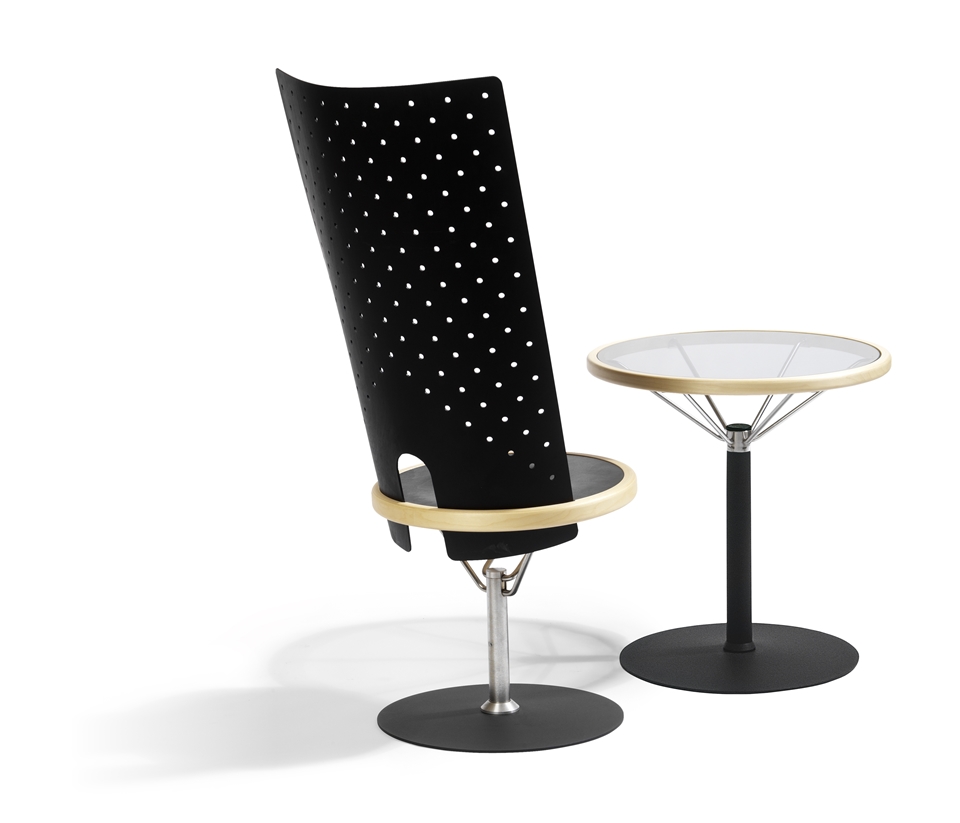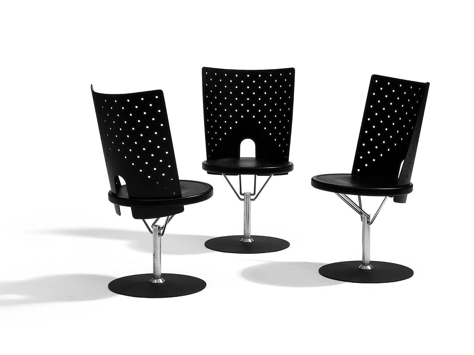 在钢旋转底座具有不锈钢冠上的涂漆钢脚板。座椅轮缘在压缩模制的在桦木单板层胶桦木帘布层。座椅中心和靠背。可选的扶手。座椅高度445毫米,总高度925毫米,总宽度510毫米,总深度620毫米,底座Ø480毫米,重量kg 12,5。