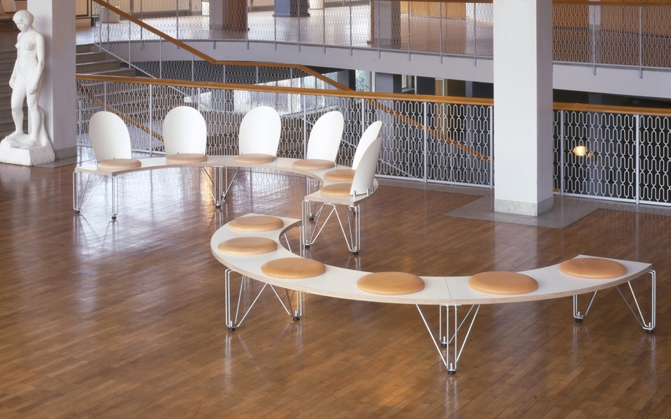 伯格·林道· 约翰·林道(Börge Lindau, Johan Lindau)共同设计GATE,大门是公共区域的可链接长凳系统。长凳可提供直式座椅。这些座椅可根据需要配备靠背和/或座椅。座椅:圆形或直形软垫。实心桦木,40毫米厚。镀锌钢框架。皮革或织物覆盖的软垫座椅。阻燃聚醚泡沫塑料内饰。座椅高度420毫米,总高度890毫米(包括靠背),总深度460 mm,Ø390毫米,CC座650毫米,长,2座1200毫米,长度,3座1800毫米,圆形,1,5座45°,圆形,2座60°。