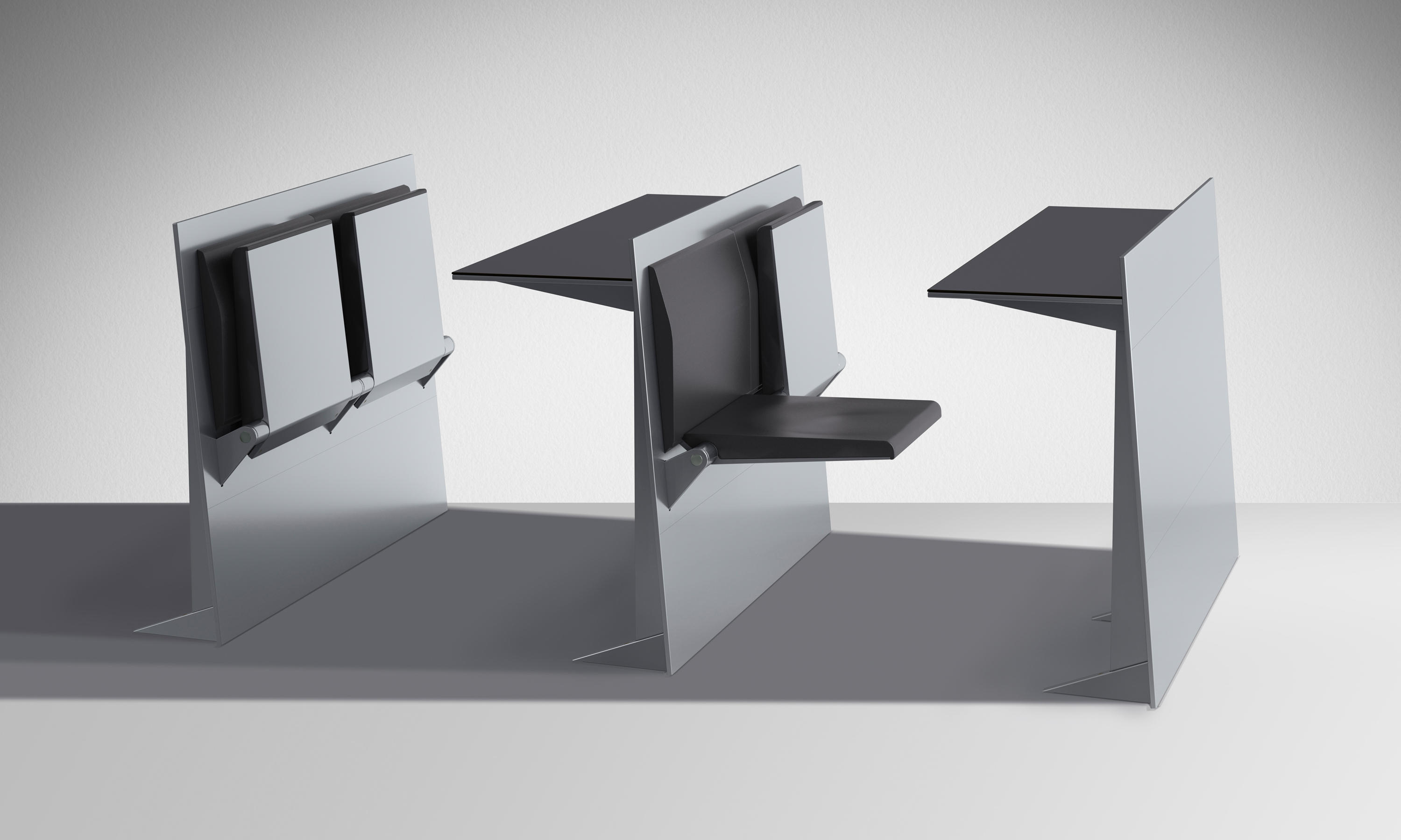 创新结构 学习台系统的特点是具有尖端的结构概念:它由1厘米厚的挤压铝板组成,这些铝板通过接头安装在一起。