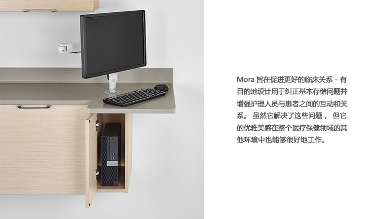 Mora旨在促进更好的临床关系 - 有目的地设计用于纠正基本存储问题并增强护理人员与患者之间的互动和关系。 虽然它解决了这些问题,但它的优雅美感在整个医疗保健领域的其他环境中也能够很好地工作。