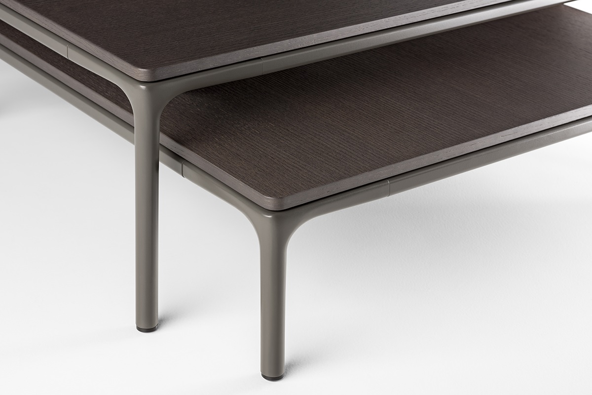 低咖啡桌,在矩形和正方形的形状 框架 在挤压铝和腿在压铸铝,涂漆无光泽白色。 上衣 在白色树脂,厚度9毫米 DIMS H 30厘米:44x150厘米,75x150厘米,75x75厘米和140x140厘米。H 19厘米:75x75厘米和140x140厘米