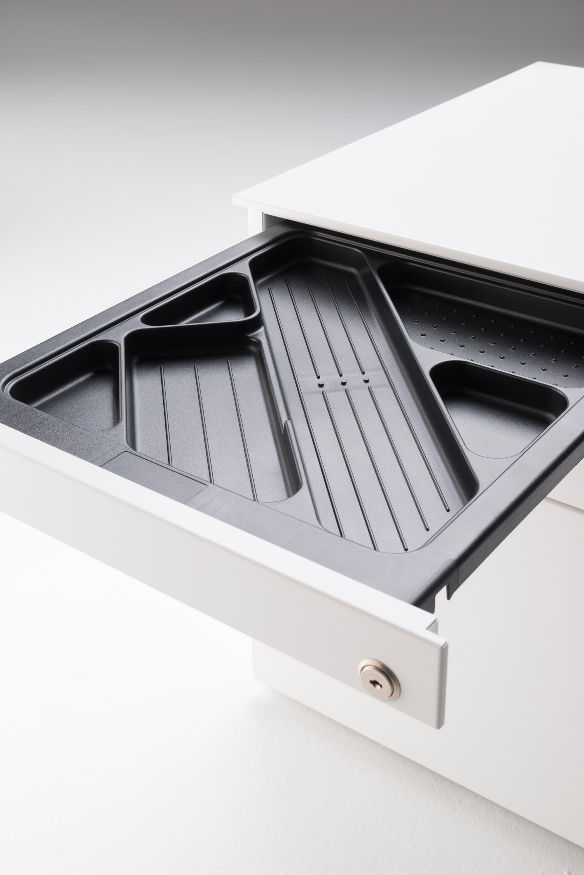 办公桌3.0-工作站系列,由铝制框架和HPL桌面(黑色或白色)组成。单色桌子配有可检查的走线槽,用于接线和电缆接入弹簧。提供以下版本: •单个版本(桌面) )与电缆管理桌面 •双版本(与前排座椅)与电缆管理桌面 工作站高度75厘米。 可用于工作站配件: •电缆管理门 •PC架 抽屉•胸部