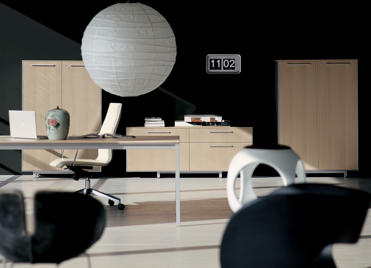 带有落地式桌面Corium 侧柜边柜/文件柜通过单一,简单的操作就可以将精致而温馨的区域转变为工作区,同时仍保持较高的美感。