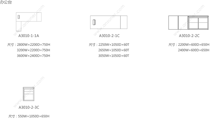 办公台 系列尺寸/示意图