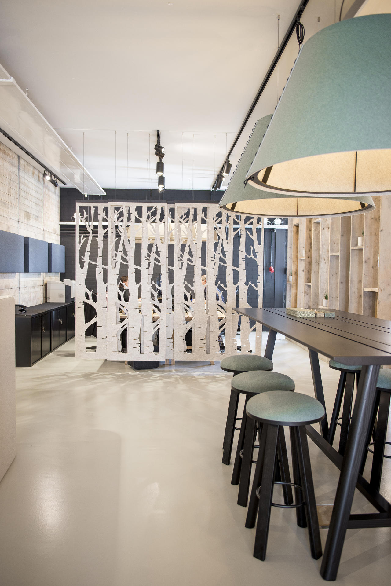 通过这种浮动的装饰面板集合创造一个隐私层,这些面板提供具有声学优势的艺术风格。它们将有助于减少声音的传递,并减轻诸如铃声之类的高音以及键入和点击的声音。它是一种优雅的元素,可将房间划分为一体。这些吸音板由双层BuzziFelt制成,采用大胆的图案进行精确切割,并具有一系列亲生物和几何图案。 您可以选择将BuzziFalls安装在墙壁或天花板上还是悬挂在上面。BuzziFalls Rail是另一种选择,它可使面板轻松滑动-创建可移动的房间隔板,从私人空间转移到公共空间。 面板在一条三米长的轨道上运行,面板从左向右滑动。通过为导轨安装两层平行轨道来创建滑动门的效果。 使用可用的新材料选项BuzziFelt Printed将BuzziFalls提升到一个新的水平 。如果您无法决定自己的喜好,请从10张照片中进行选择,并选择一张或两张照片的组合来选择不同的外观。 吸音毛毡结构可确保从正面到背面都具有充分的声学性能。它减轻了区域之间的声音传递,并吸收了高频音调,例如同事的颤音,敲打声或铃声,这使其成为开放空间中的理想空间分隔器。