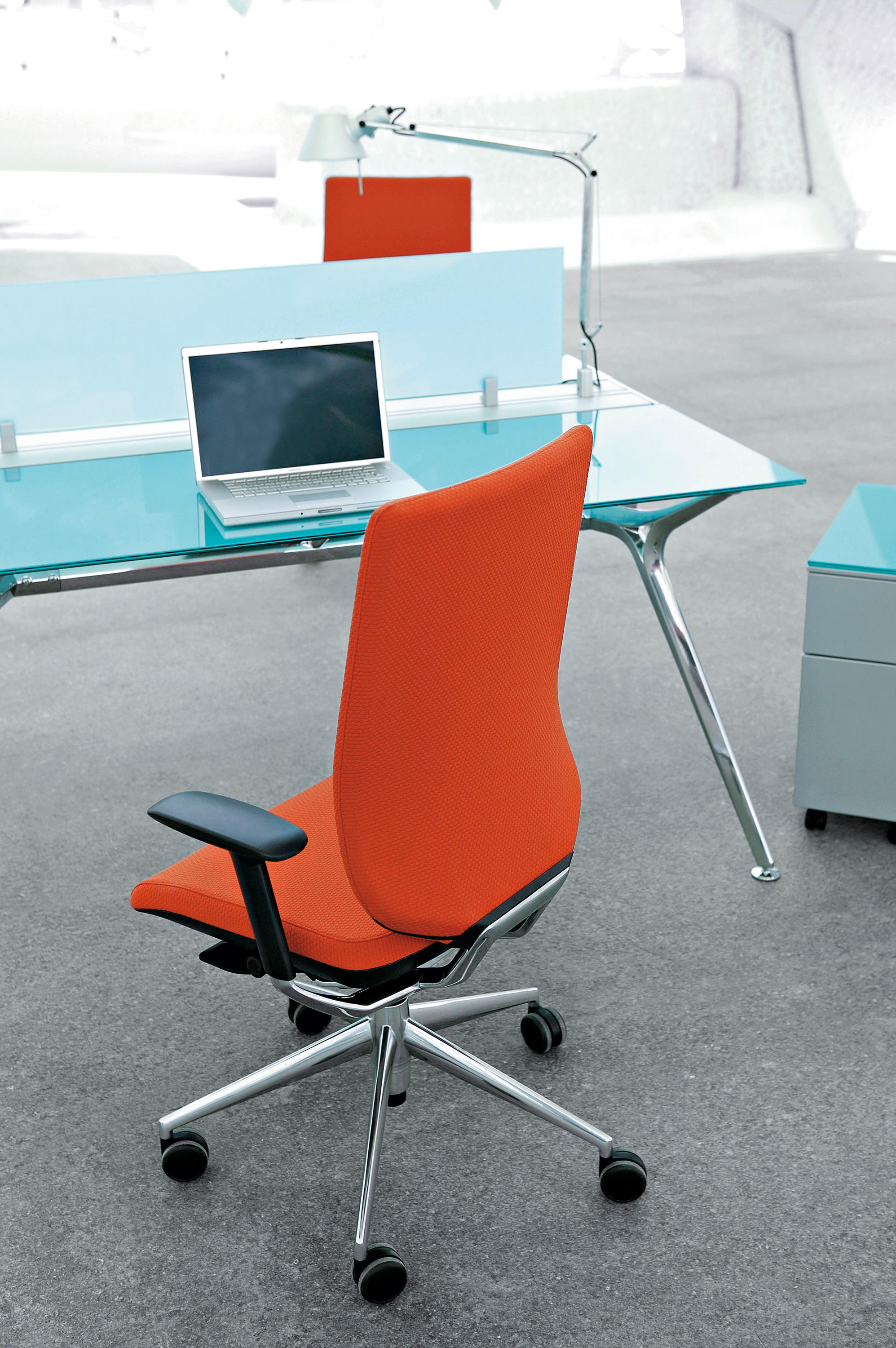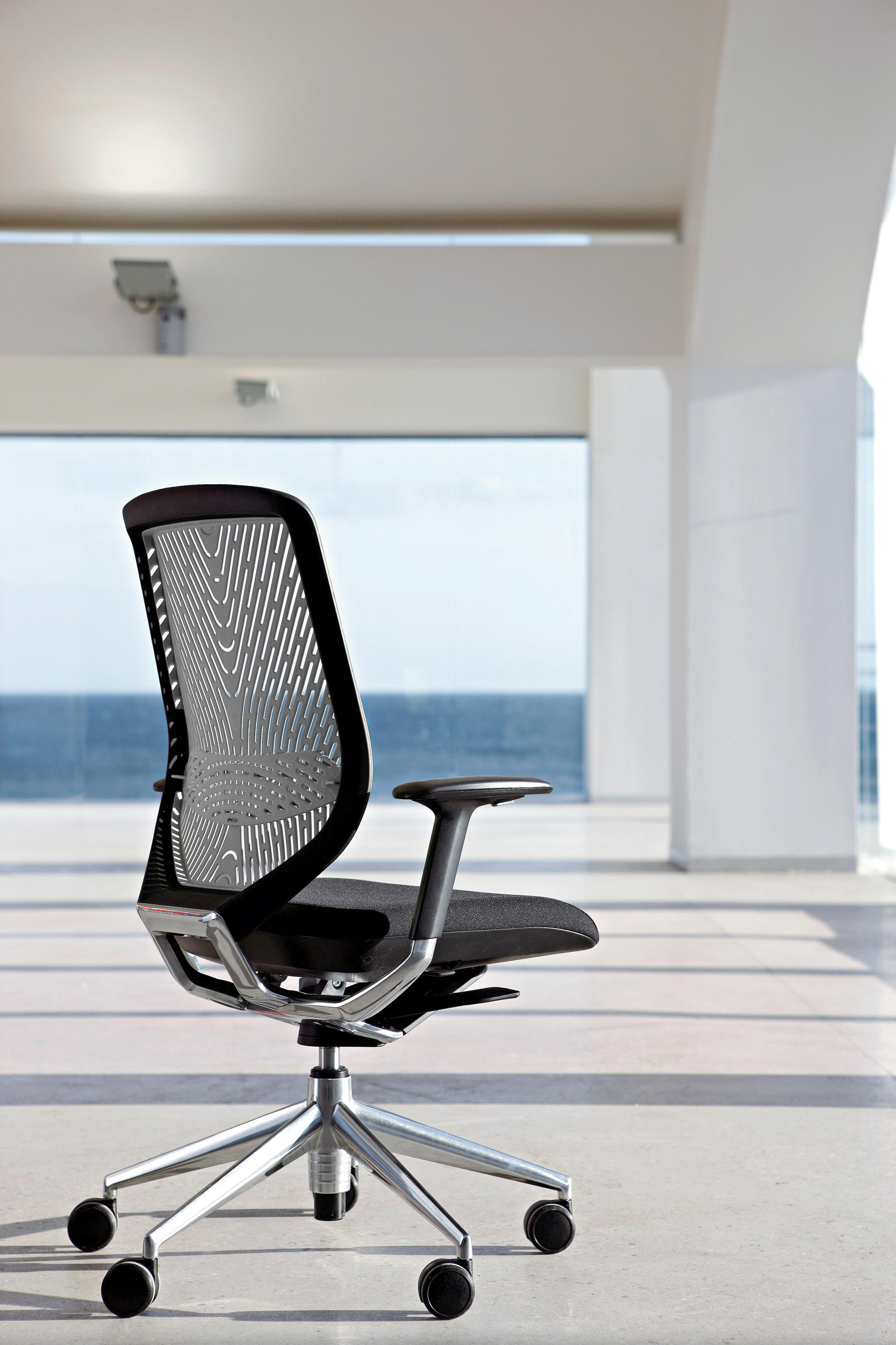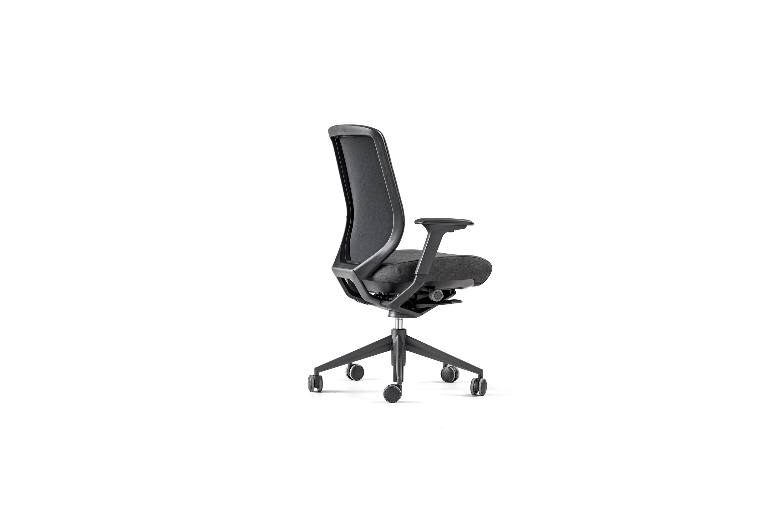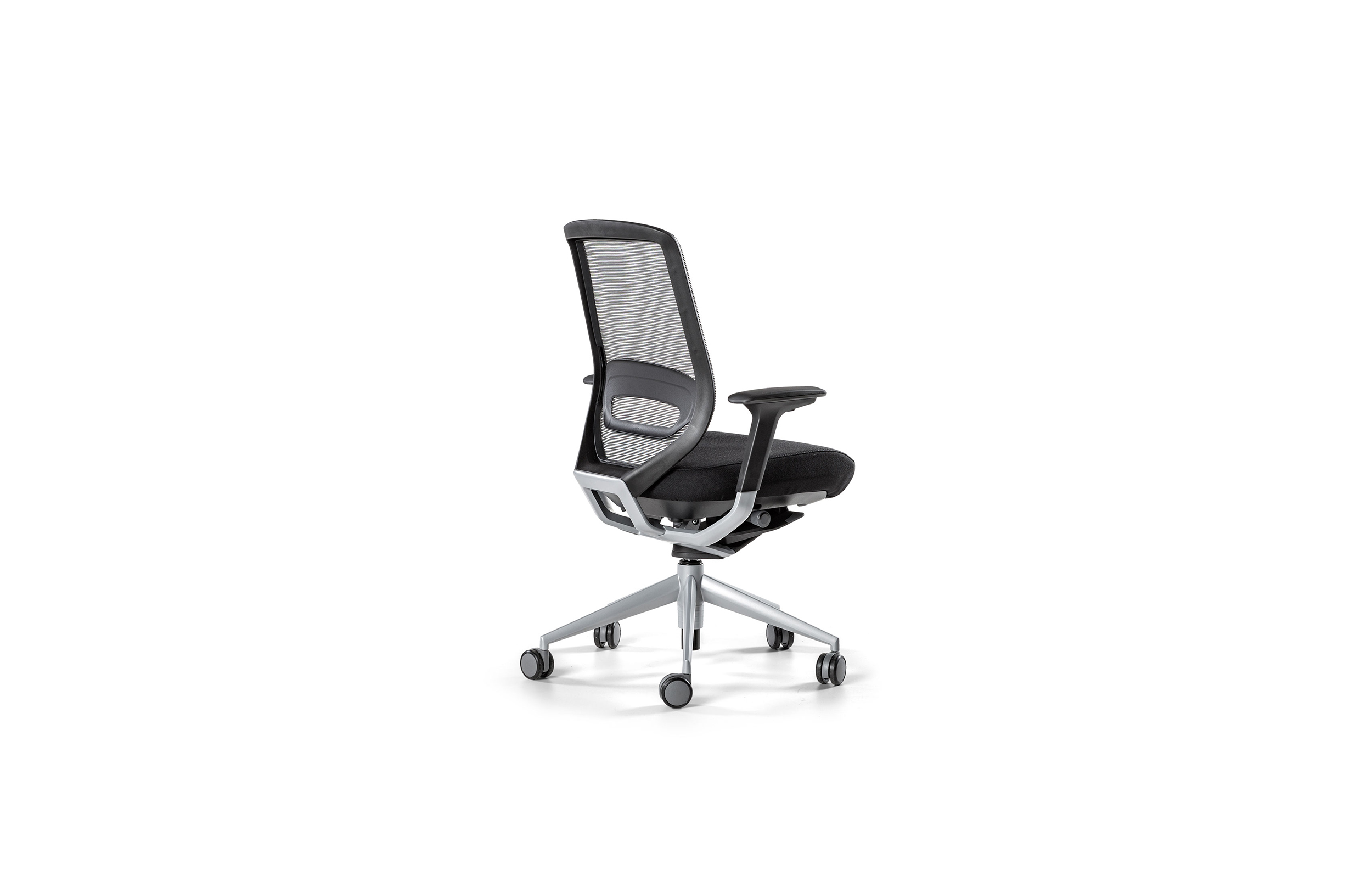 采用最新的智能靠背系统,完美的设计了在办公椅设计前沿Tnk Flex系列。自动旋转的枢轴可以将旋转过的椅子恢复到他默认的方位,而不需要用户手动激活任何装置.