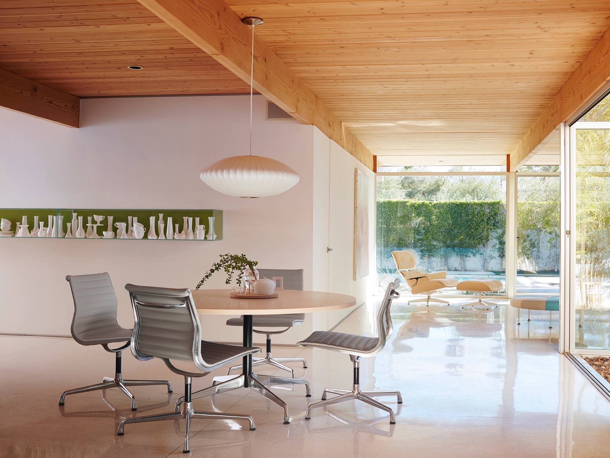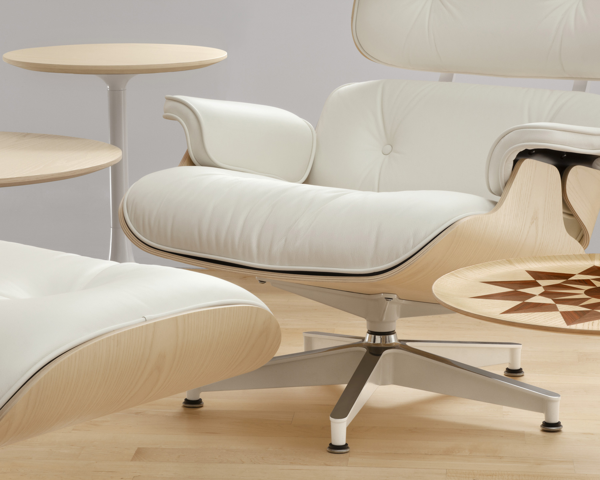 1956年知名由夫妻档设计师Charles & Ray Eames发表的lounge chair&Ottoman历经50多年的岁月,仍被视为现代家具史上最重要的经典设计家具之一,已经成为美国最重要的现代艺术博物馆MOMA的永久收藏品;椅子的压铸铝制部分则是以铝合金镀鉻,让整体视觉呈现轻盈興现代感.