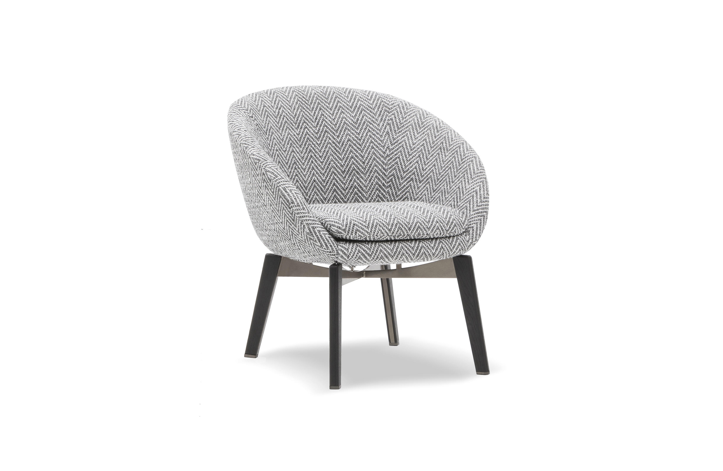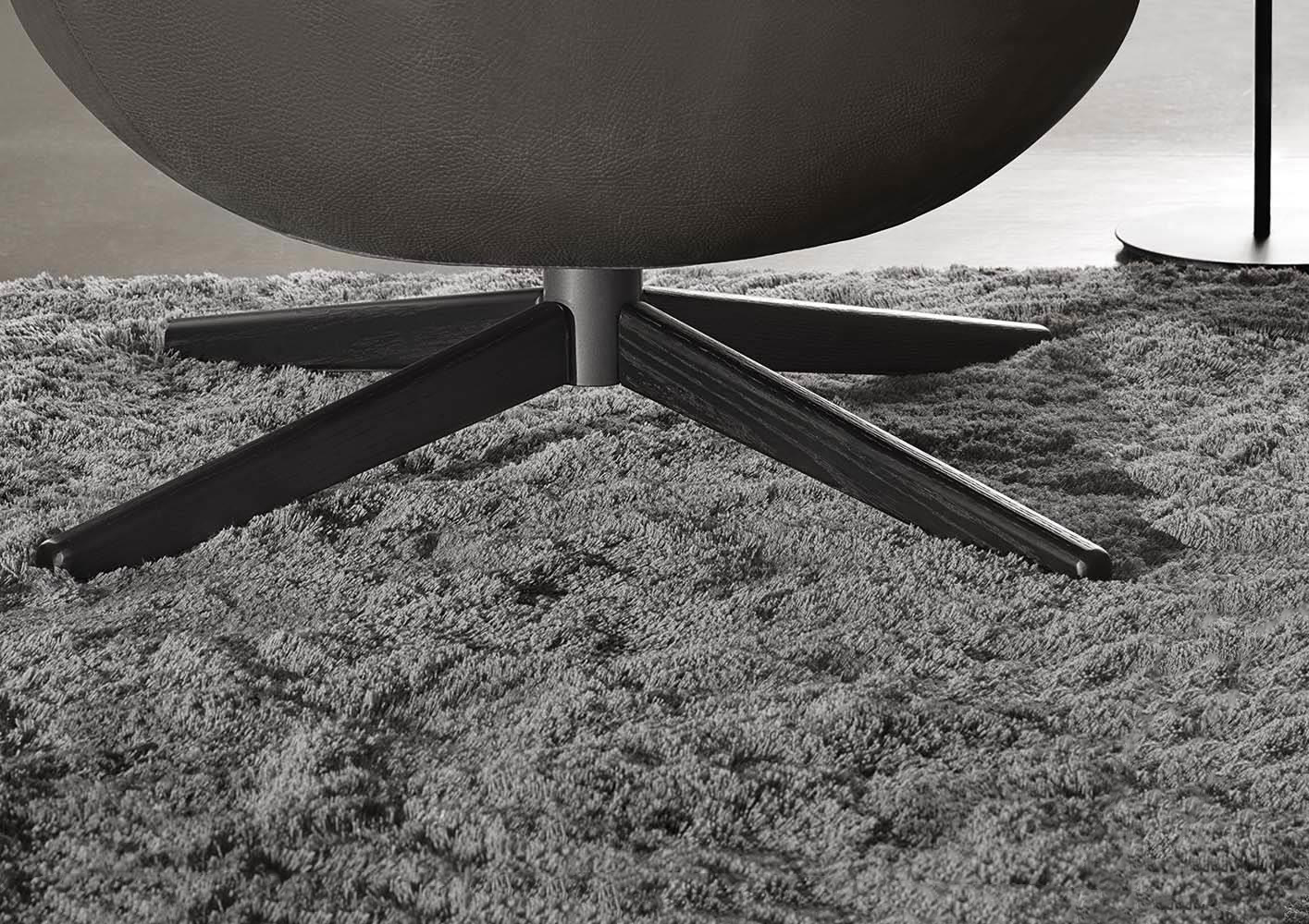 扶手椅、折叠式扶手椅、休息厅和餐椅的旋转版本则以木制辐条制成的底座为特色。