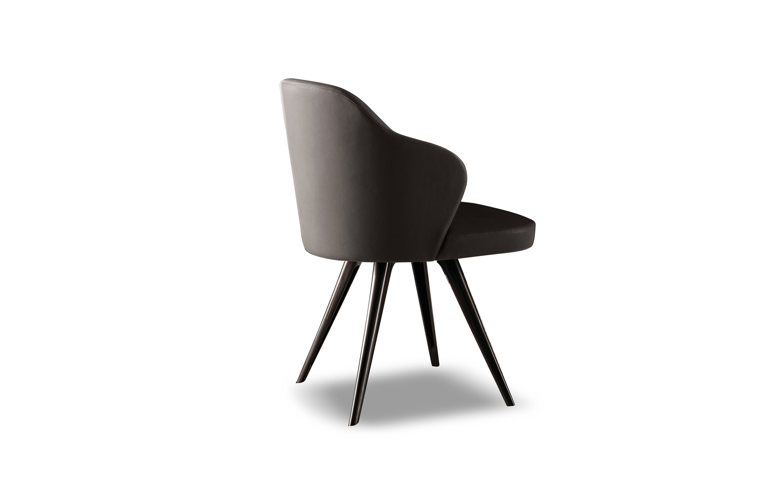 莱斯利“餐厅”小扶手椅展现出圆润而又迷人的造型和同名扶手椅的平衡比例。其特点在于冷模注塑而成的弧形靠背,搭配柔软的填充物。一丝不苟的覆面工艺打造完美的外观效果。Leslie “Dining”可以完全采用织布覆面或者皮革覆面,也可以选择混搭,靠背为织布覆面,坐垫则包覆皮革,体现两种材料之间的完美对比效果。Leslie “Dining” 小扶手椅有三种样式:Pewter色漆面的钢制固定基座,或是Pewter色漆面的压铸铝支撑腿。旋转式基座也采用Pewter色漆面的压铸铝支撑腿。