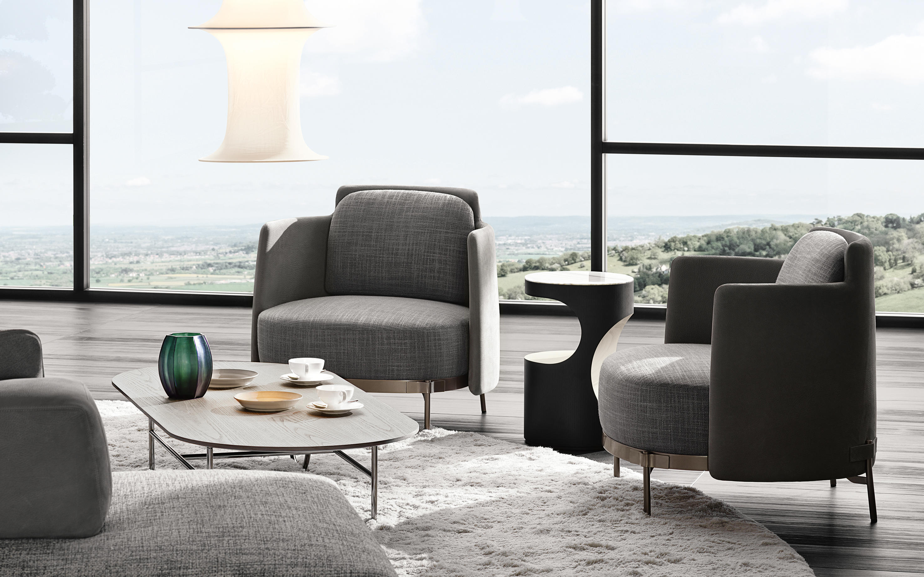 这种金属框架,有轻青铜、铜或黑镍,有不同的高度。圆桌由椭圆形或圆形顶部完成,直径不同,可在青铜玻璃、卡拉卡塔大理石或甘草刷灰中定制。