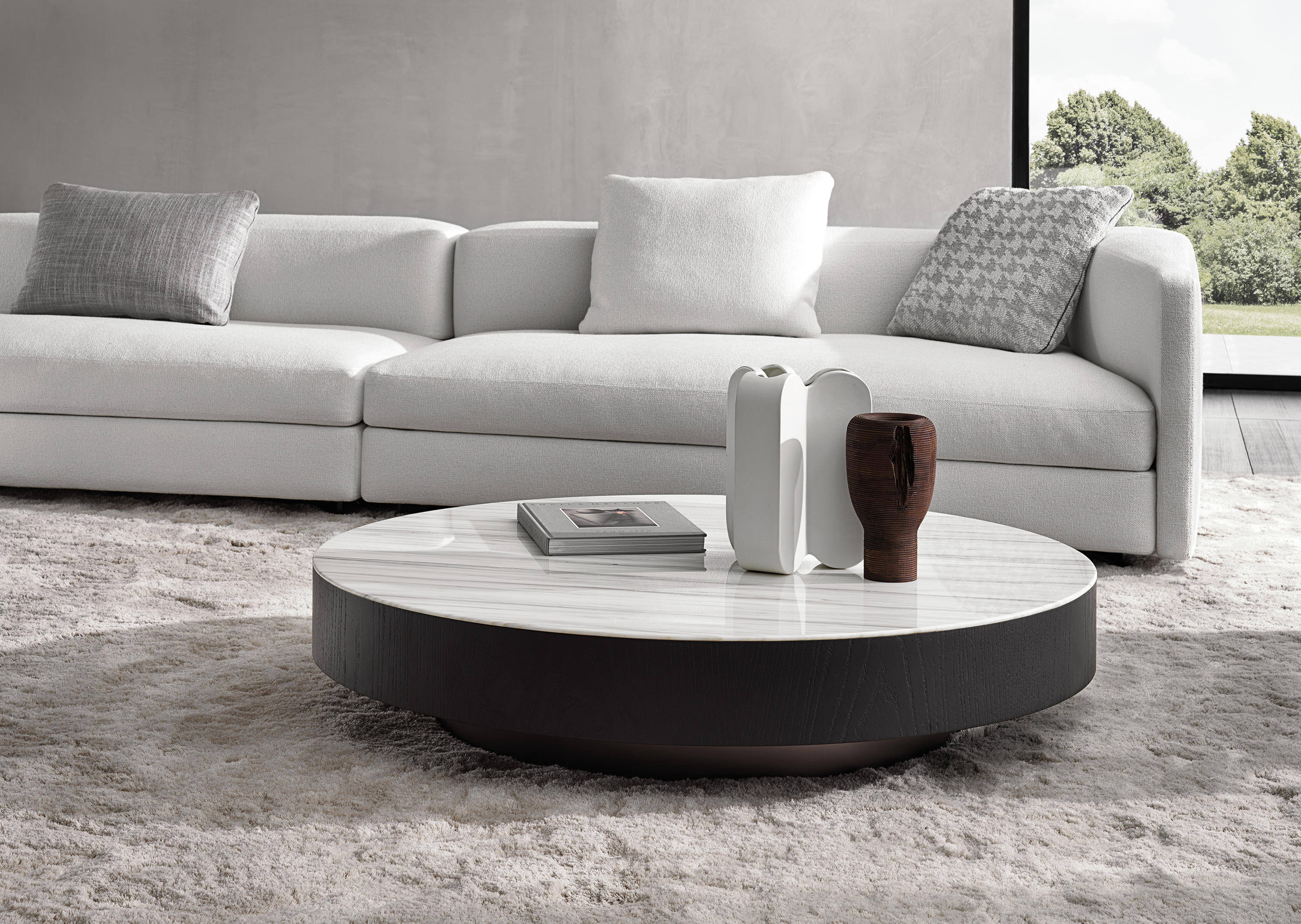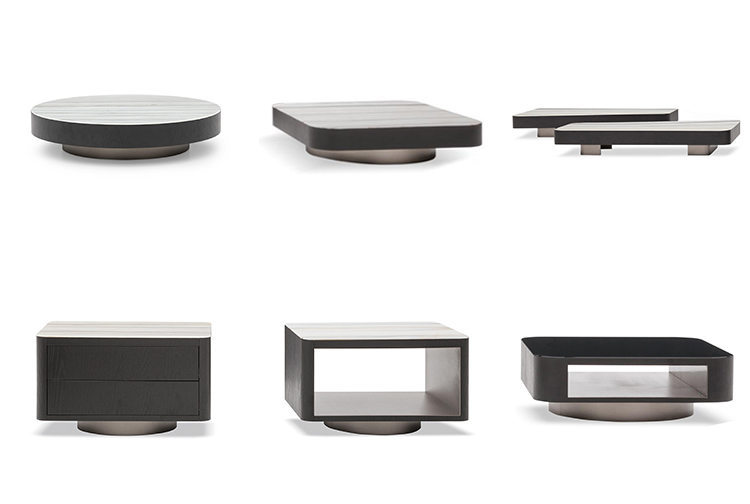 由悬挂的几何体积和较低的高度相结合形成的,在圆形、方形、矩形和梯形的版本中都有米尔顿的侧表。这些几何图形被圆角的圆角所软化,这让人想起了亚历山大“下降”座位系统的蜿蜒曲线。它们的特点是对70年代的线条进行了更为现代和装饰性的重新诠释,展示了珍贵材料和有机几何的完美结合。