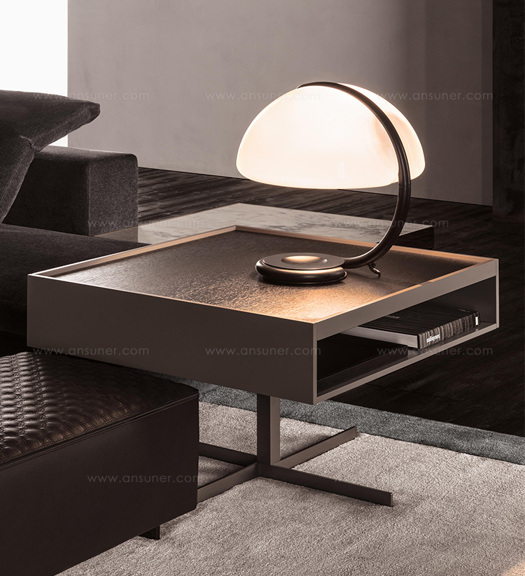 克洛塞边几特别为搭配Yang沙发系列而设计,拥有实用的置物表面和收纳空间。Close边几的理想位置可以是在靠背椅和Yang沙发之间,提供使用的置物表面:每件要用的物品近在咫尺,或是整齐地摆放在下方的收纳空间中,您可以在沙发上尽享放松时光。基座采用十字的简洁造型,采用金属制成,搭配亚光铜色表面。上方部分的置物空间采用前后皆可用的开放式设计,并且搭配一个可取下的托盘,有两个版本可供选择:一种是构架为Moka色漆面的开孔橡木,上方面板为粘土色亮光漆,内部的托盘为粘土色亚光漆;另一种是构架为粘土色亚光漆,上方面板和内部托盘为Moka色漆面的开孔橡木。除了不同尺寸的边几以外,Close系列还包括边柜、写字台和床头柜。