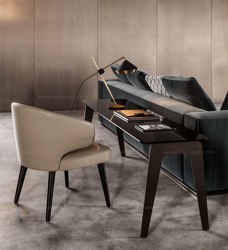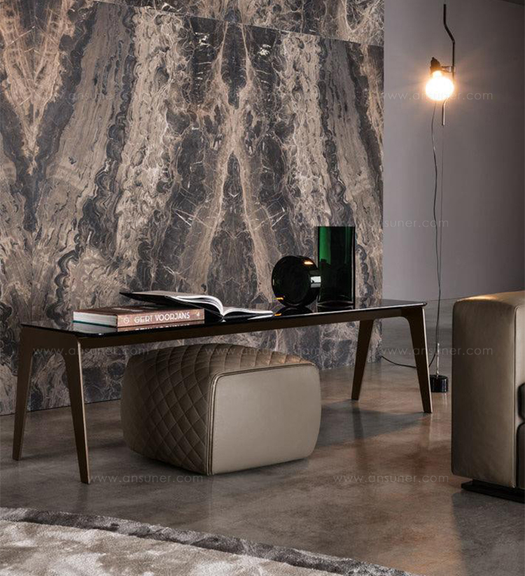以精美梣木底座致敬传统黑檀木艺术,搭配拥有圆滑转角与柔和饰边的光泽漆面黑檀木、黑色脱蜡琉璃及 Marron Damasco 大理石台板。