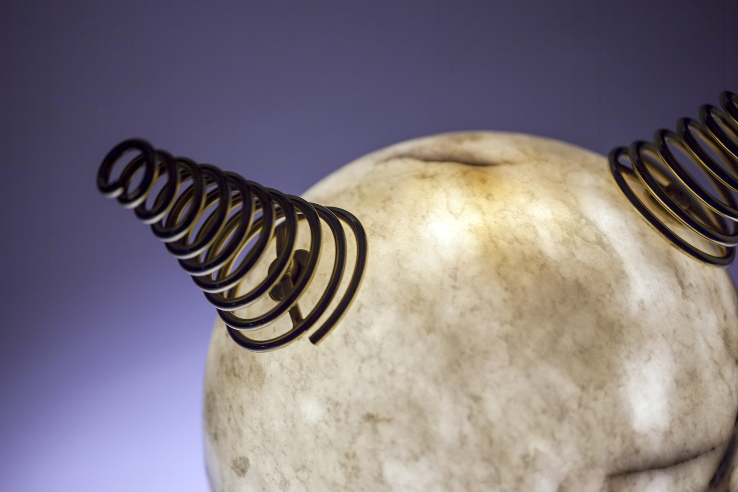 “Min Lilla Viking”(My Little Viking)台灯向老式斯堪的纳维亚战士头盔致敬。 它与现代风格的形状和风格相呼应。 金属盔甲和骨头已被大理石和抛光黄铜所取代,使这种野蛮的象征更加优雅。 当点燃时,Carrara和Afyon大理石通过揭示类似行星的石头的丰富自然纹理使观众感到惊讶。 “Min Lilla Viking”是将在不久的将来发布的一款严肃的漫画台灯中的第一款。