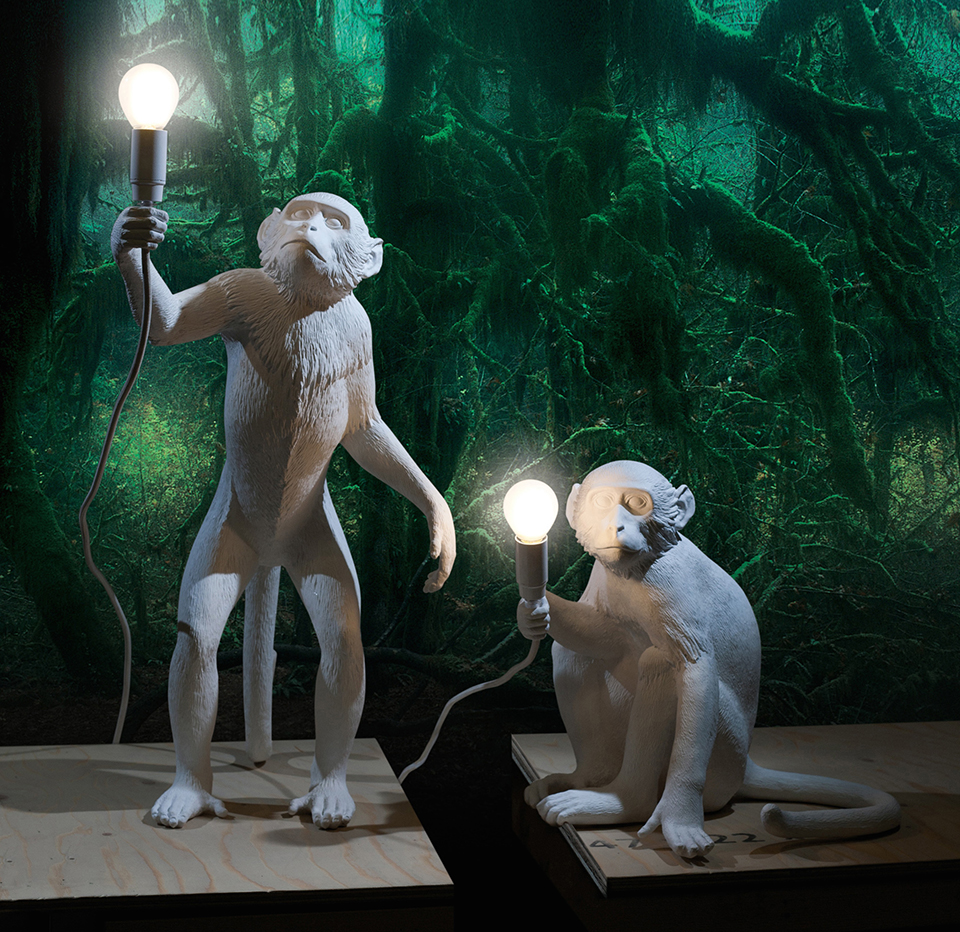 猴子很容易让人联想到人类,这就是为什么经常在雕塑作品中提到它们。在Seletti的版本中,他们溜进了我们的房子,觉得他们是在偷那些灯泡,其实是为我们服务,