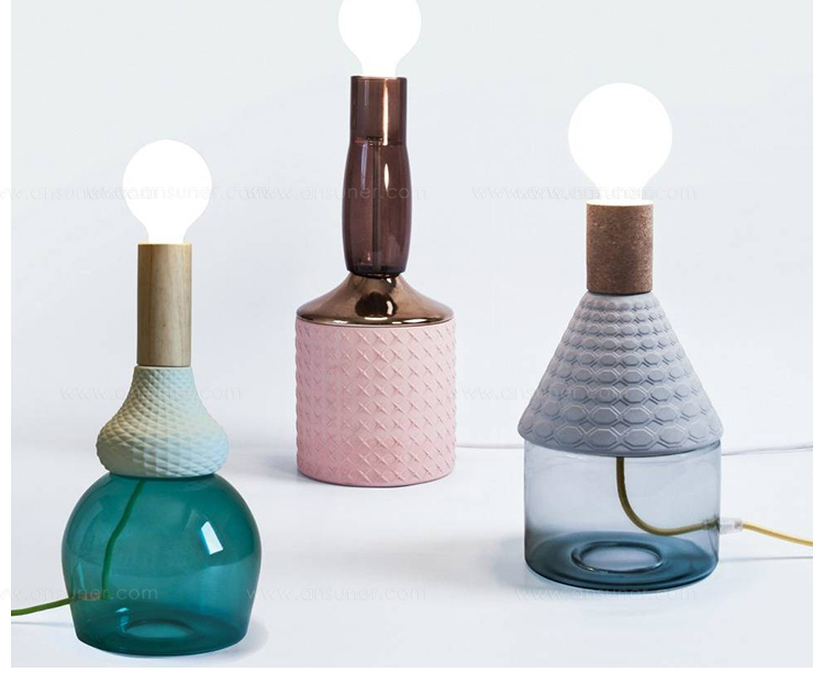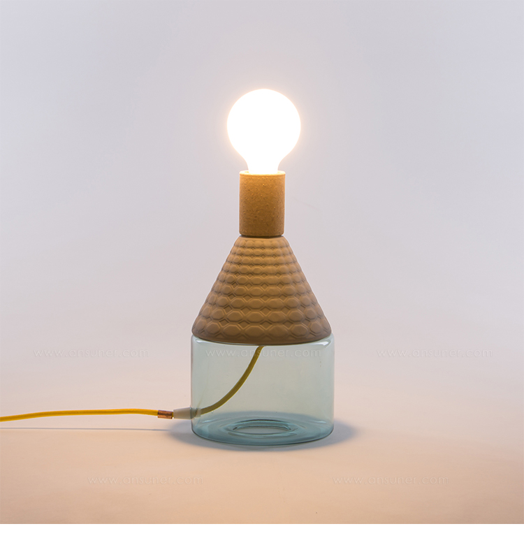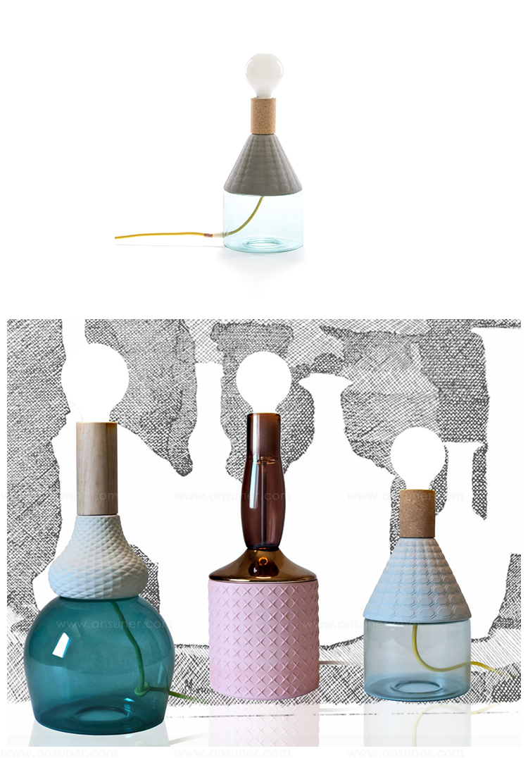 造型如复古的瓷器,带有软木材质的自然材料,可以协调和放松照亮您的环境,长200cm的彩色织物电线,可以在房间中自由移动和放置。