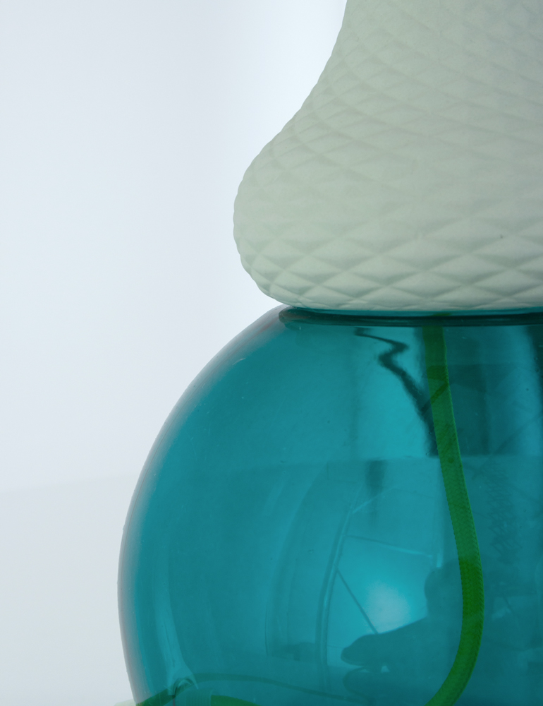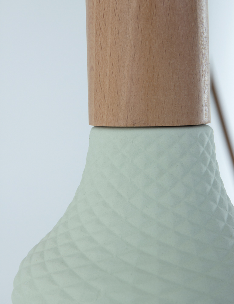造型如复古的瓷器,带有软木材质的自然材料,可以协调和放松照亮您的环境,长200cm的彩色织物电线,可以在房间中自由移动和放置。