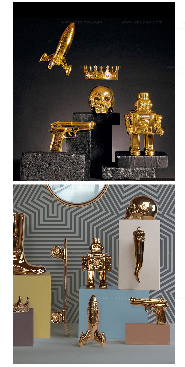 与Memorabilia系列一样,Memorabilia Gold是一系列独立装饰品,让人想起文化或历史事件,这也增加了兴趣点。 “我的滑板”实际上被设计用作食品拼盘,用于寿司或冷肉等食品,体现了Seletti对功能性艺术的热爱!