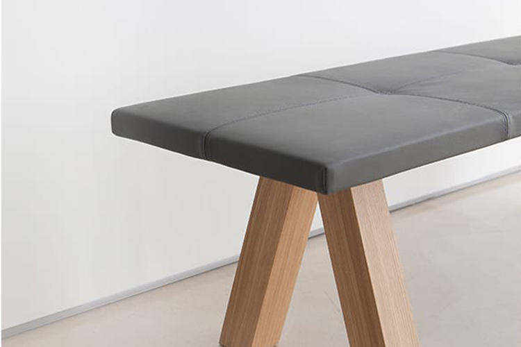 坚固的橡木腿和精巧的座椅,采用平纹或带衬垫的面料,采用我们的面料和皮革系列。
