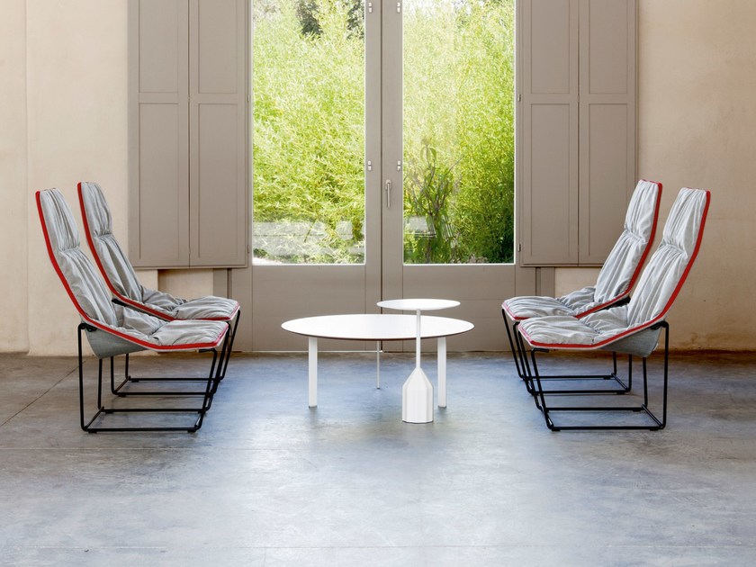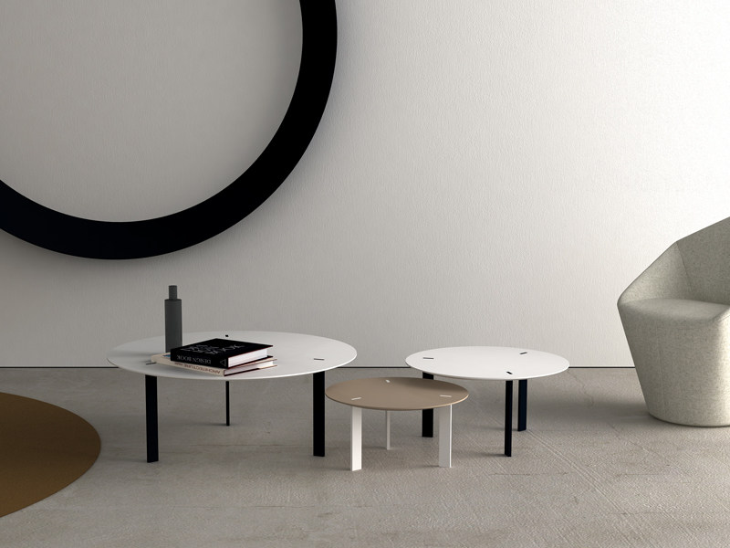 偶尔的桌子设计简约独特的风格。钢腿通过顶部榫眼,营造出独特的外观。由于具有多种表面处理选项,该表可以在许多地方使用,无论是在家中还是在不同的建筑设置中。桌面采用漆面MDF或橡木贴面,由Viccarbe提供的饰面和带透明尖端的漆钢腿。