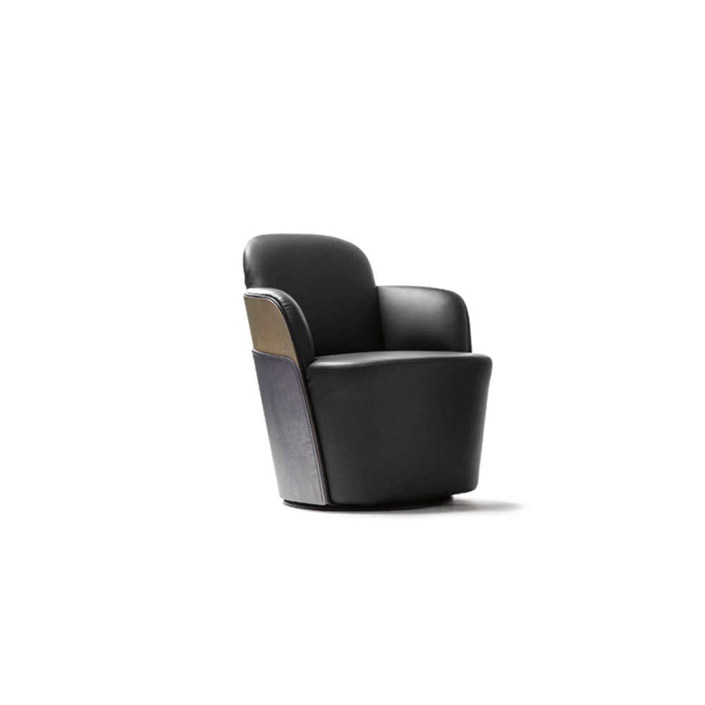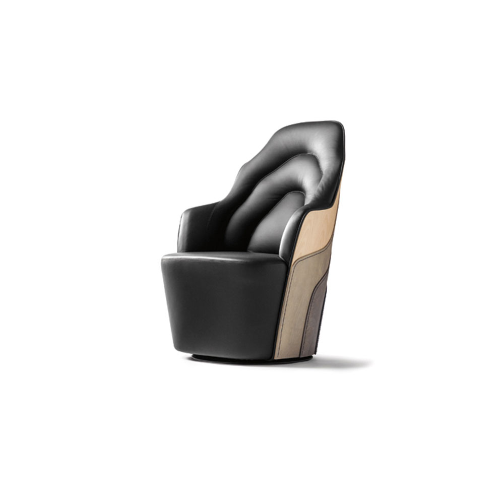 Little Couture就像我们Couture扶手椅的prêt-à-porter版本。它基于相同的旋转底座,但后背较低。停靠在扶手高度并围绕扶手椅的木质部分由两层木头组成,该两层木头与可识别的针迹结合在一起,使用我们独特的“木材裁缝”技术可以直通木材。 实木座椅结构和软垫。外部靠背由两块桦木胶合板拼合而成,并以变色染色。用BD提供的不同材料和皮革进行装饰。可选的旋转系统。