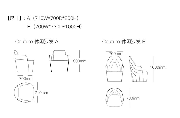 Couture 休闲沙发 系列尺寸/示意图