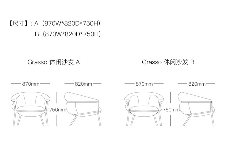 Grasso 休闲沙发 系列尺寸/示意图